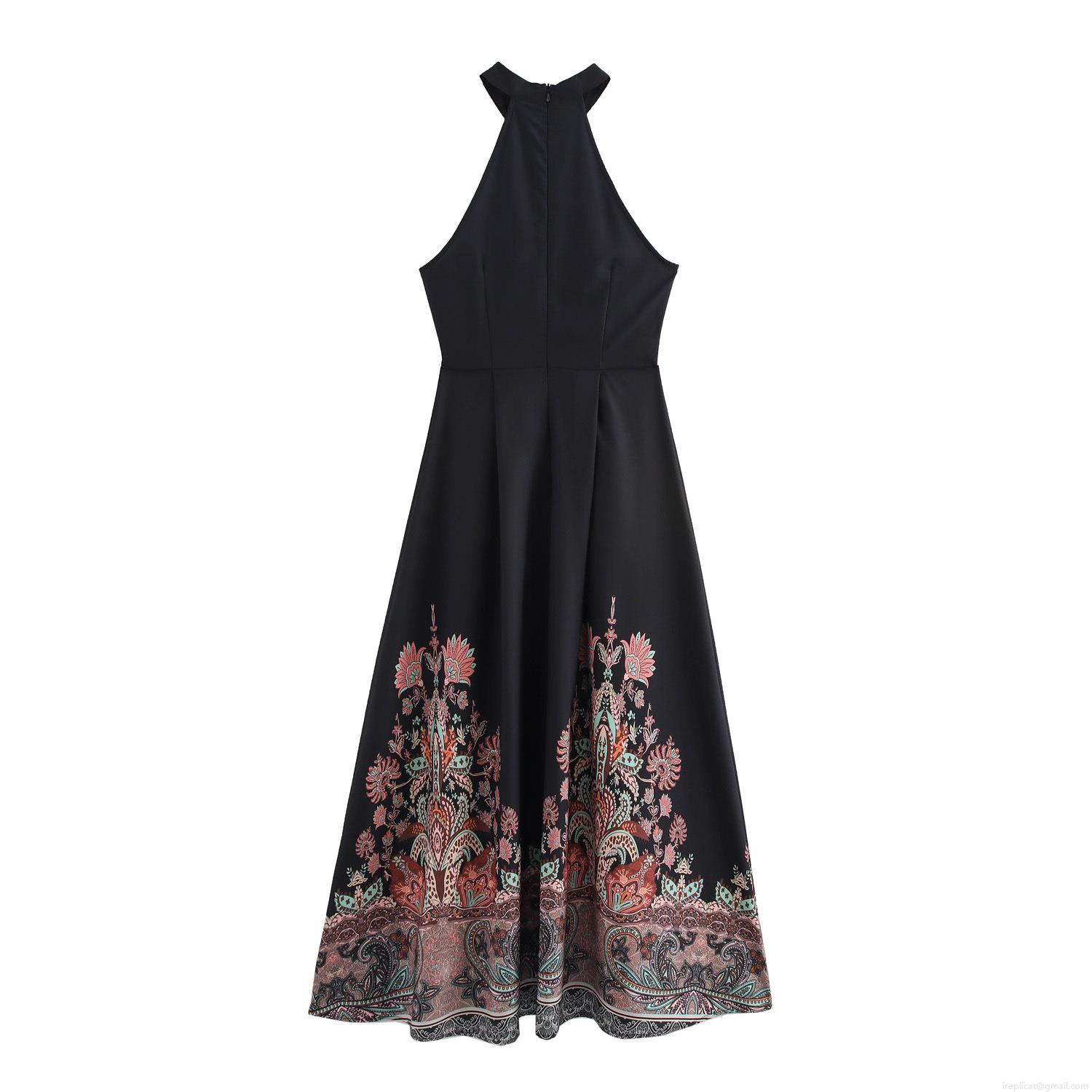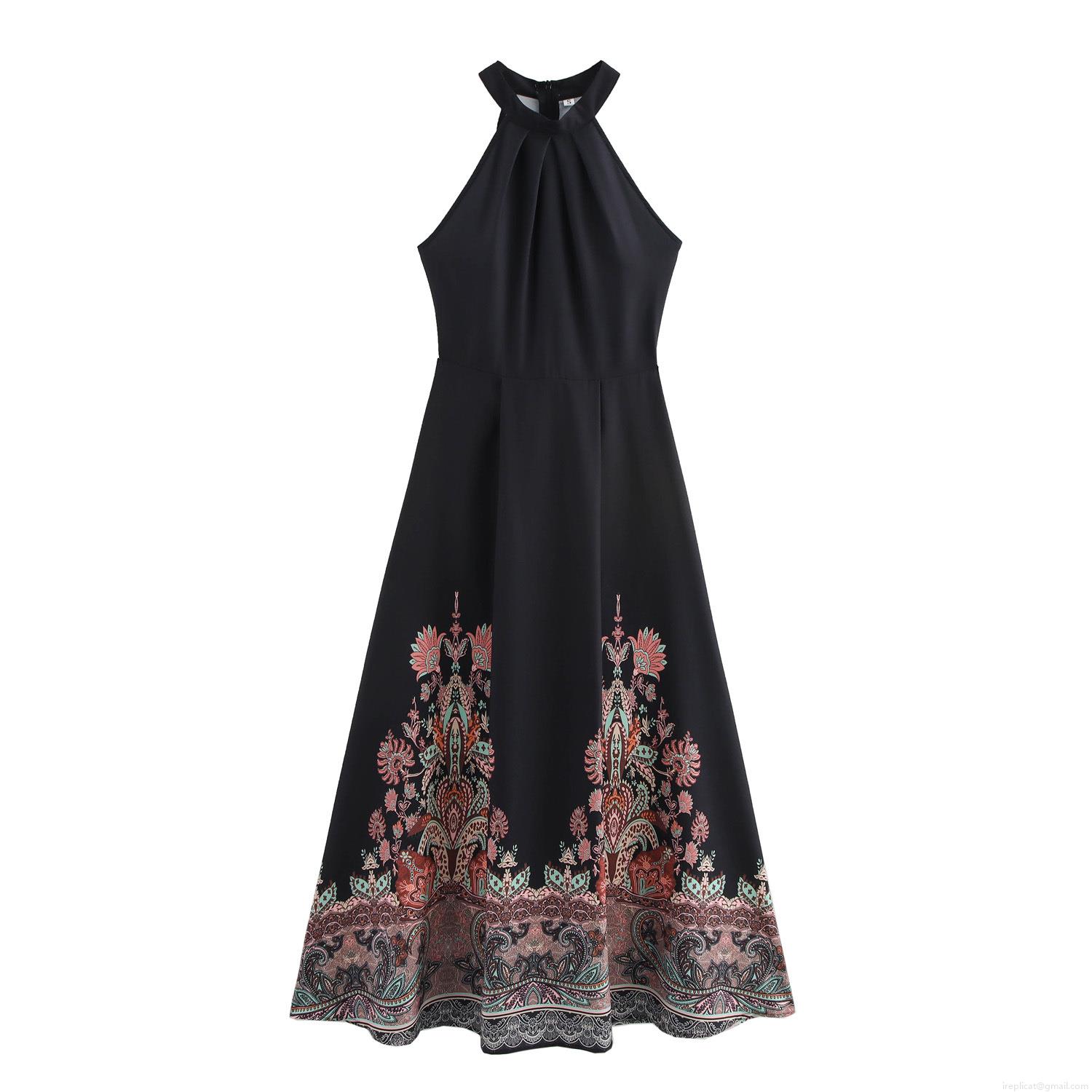 • Women Vintage Paisley Floral Print Halter Neck Maxi Dress Sleeveless Backless High Waist Polyester Long Dress For Summer Beach Vacation Party