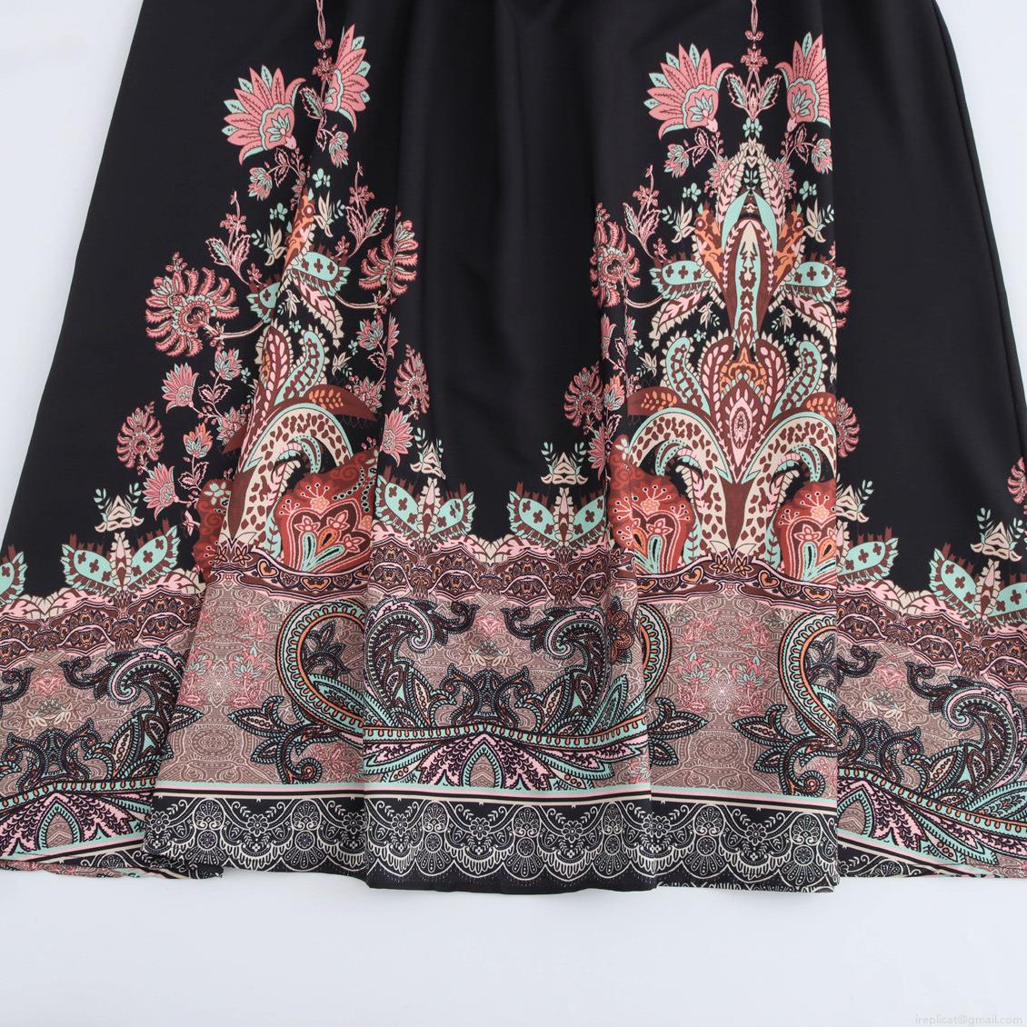 Digital, Pleats, Flowers, Ethnic Style, Zipper, Paisley, Neckband, High-waisted