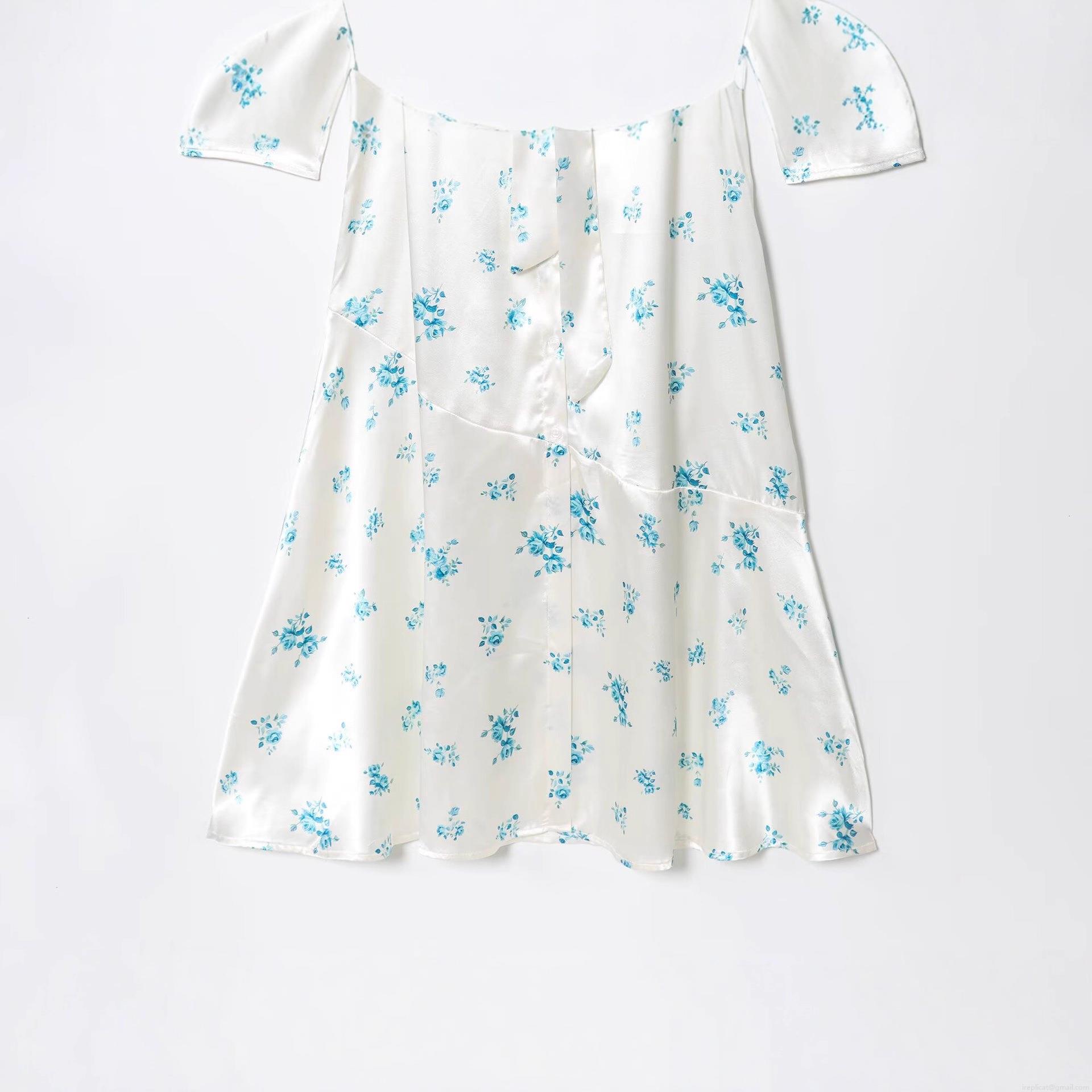 Splice, Floral Pattern, Rose, V-neck, Satin Texture, Split Design, Waist Tie