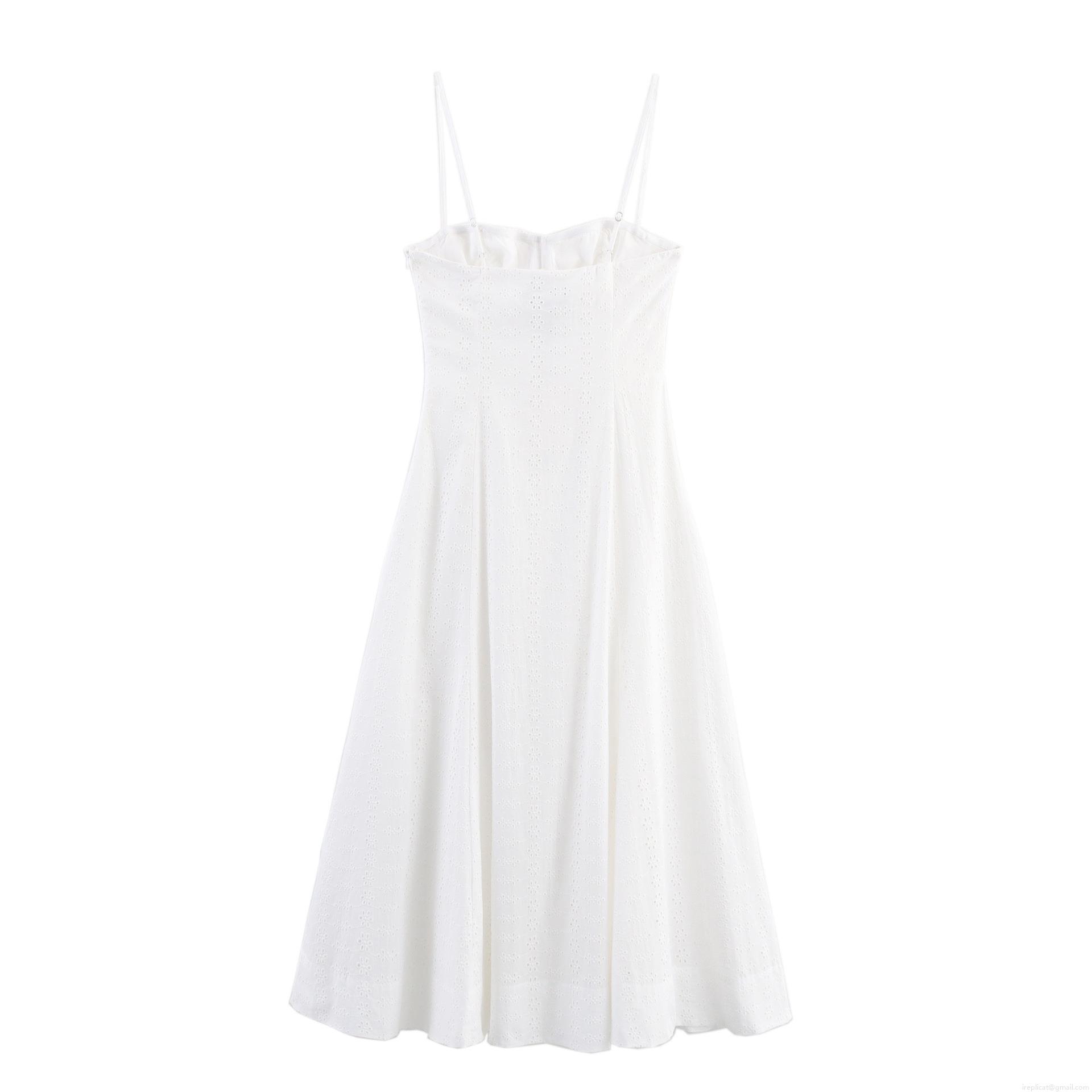 • Women White Hollow Out Embroidery Maxi Dress Camisole Sleeveless Slim Fit Floral Broderie Anglaise Sundress For Vacation Party Elegant Street Style Dress