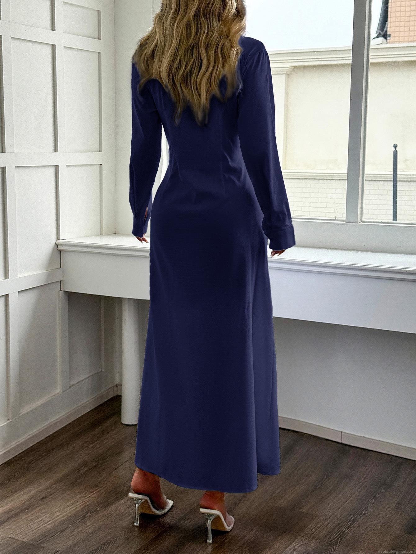 • Women's 100% Polyester Long Sleeve Shirt Maxi Dress Casual Button Down Side Slit Turn-down Collar Solid Color Vacation Leisure Long Dresses