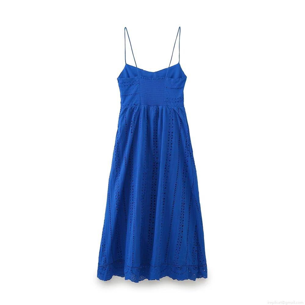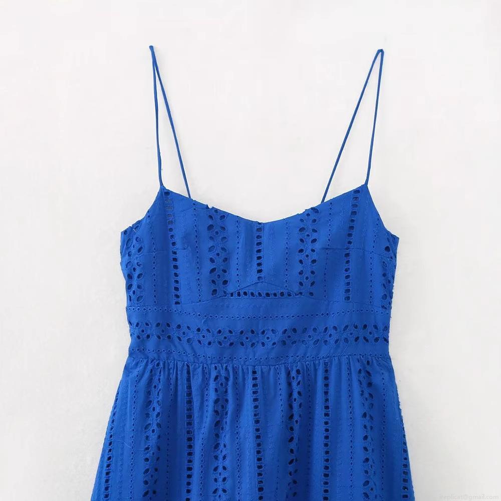 Openwork Embroidery, Hollow-out Solid Color, Heavy Embroidery, Thin Straps, Gathered Design