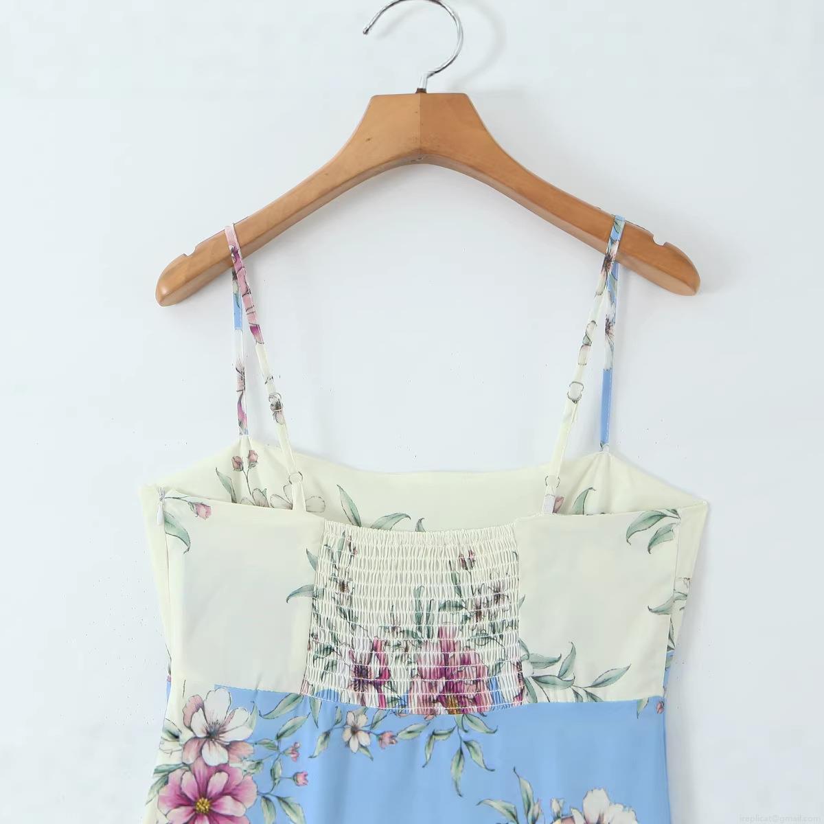 Women's Bohemian Floral Print Spaghetti Strap Maxi Dress Summer Backless Smocked A-Line Long Beach Sundress Polyester Casual Holiday Outfits