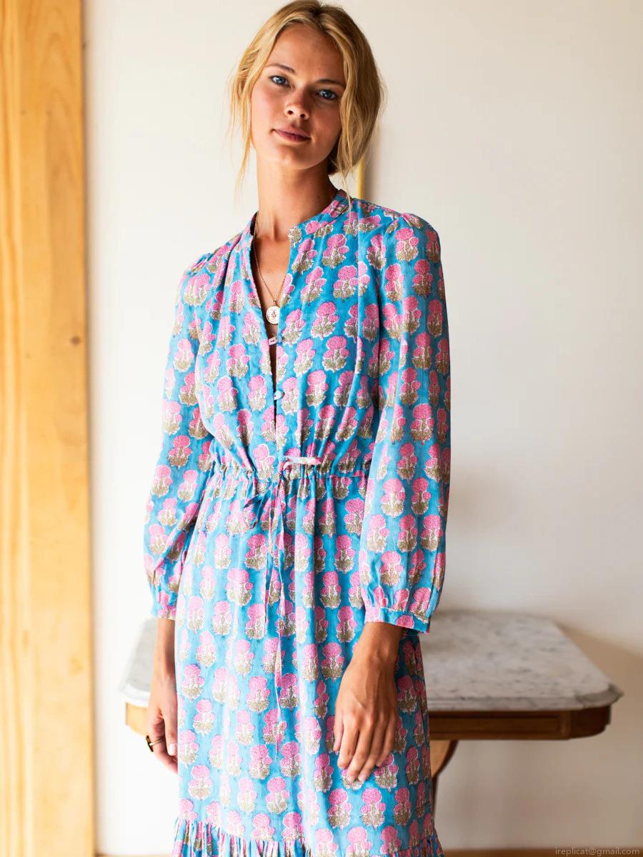 Floral Pattern, Ruffles, Waist shaping, Drawstring, V-neck