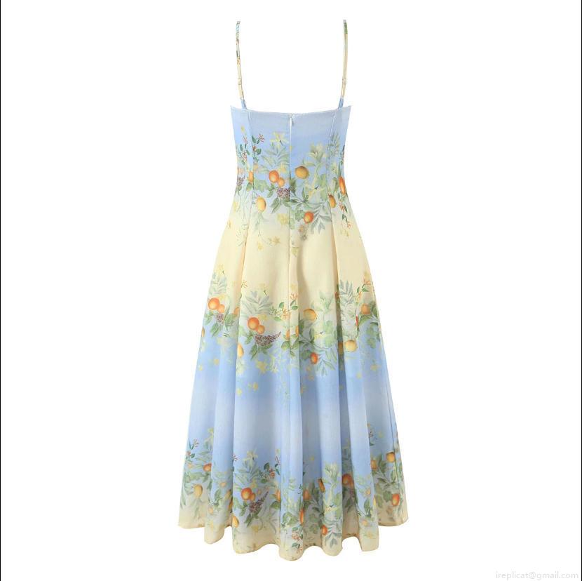 Lemon, Gradient, Tangerine, Printing, Orange, Green Leaves, V-neck, Suspenders, Backless
