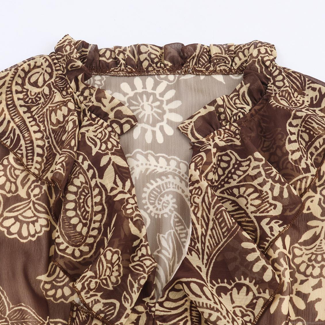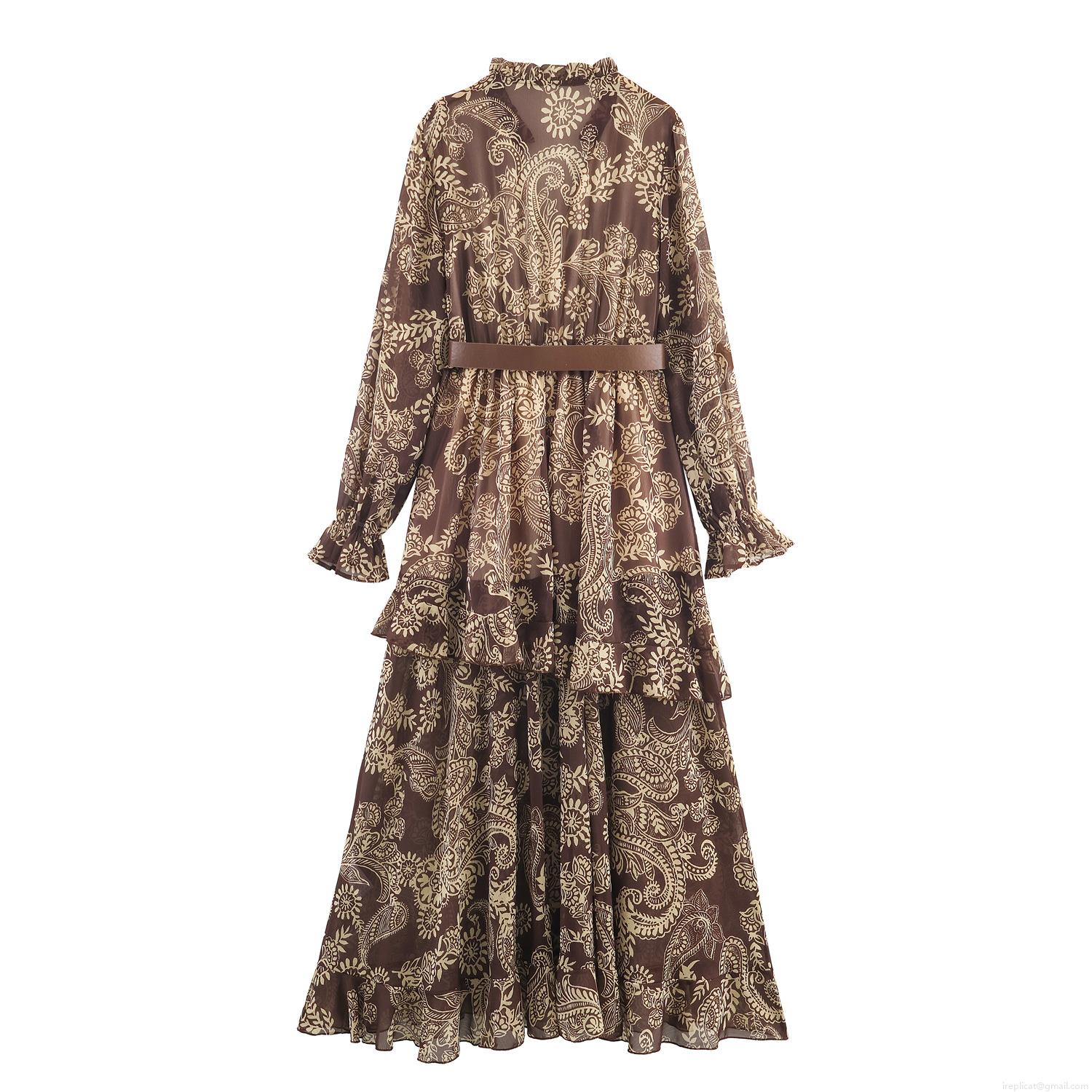 • Women's Bohemian Maxi Dress Elegant V Neck Long Sleeve Chiffon Polyester Paisley Floral Print Tiered Ruffle Dress With Belt For Beach Vacation Summer Autumn Retro Ladies Long Dresses