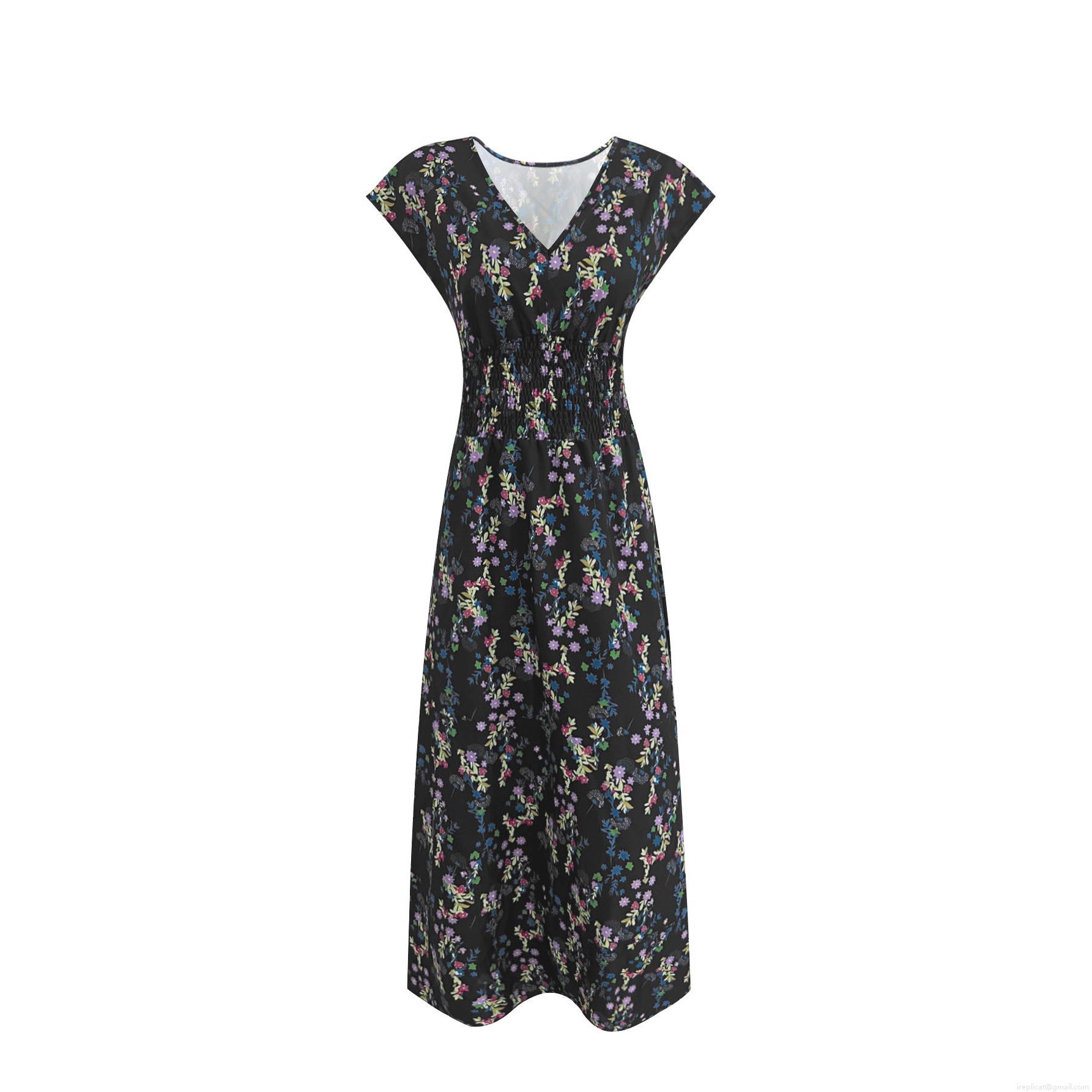 Floral, Cashew Flowers, Printing, V-neck, Big Swing, High Fork, High-waisted, Paisley Print