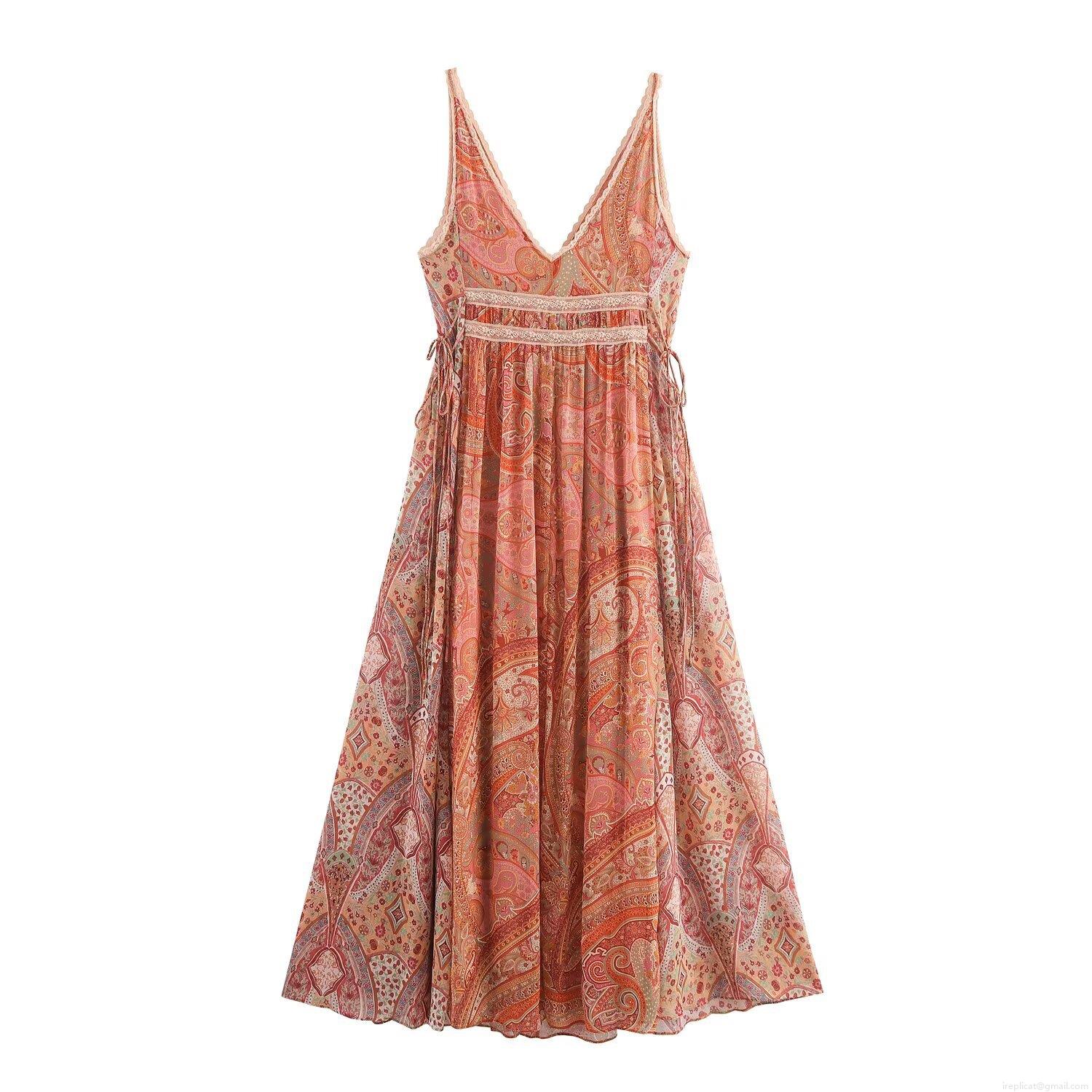 • Women's Bohemian Paisley Print Maxi Dress Sexy V Neck Sleeveless Lace Patchwork Backless Flowy Summer Beach Dress For Women