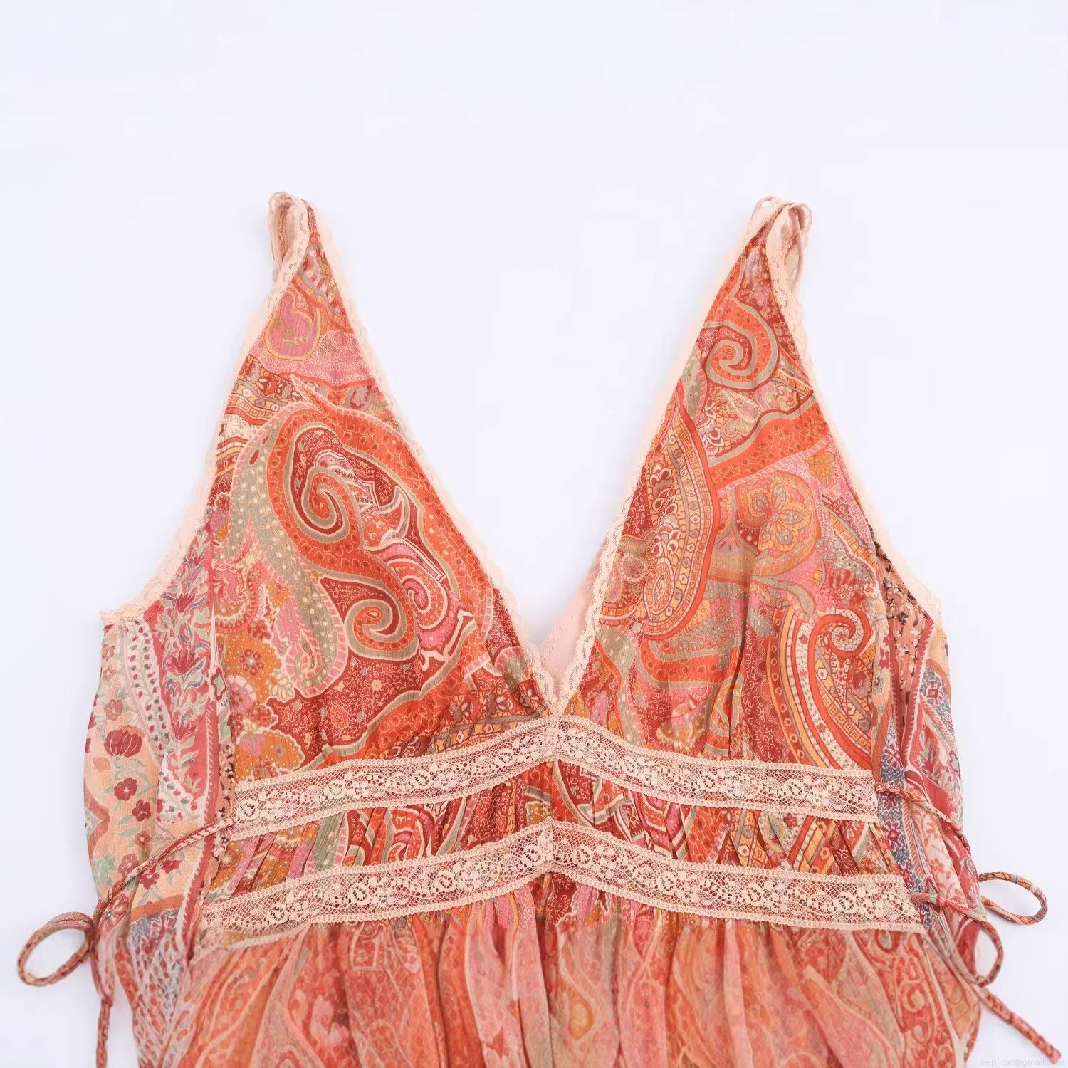Women's Bohemian Paisley Print Maxi Dress Sexy V Neck Sleeveless Lace Patchwork Backless Flowy Summer Beach Dress For Women