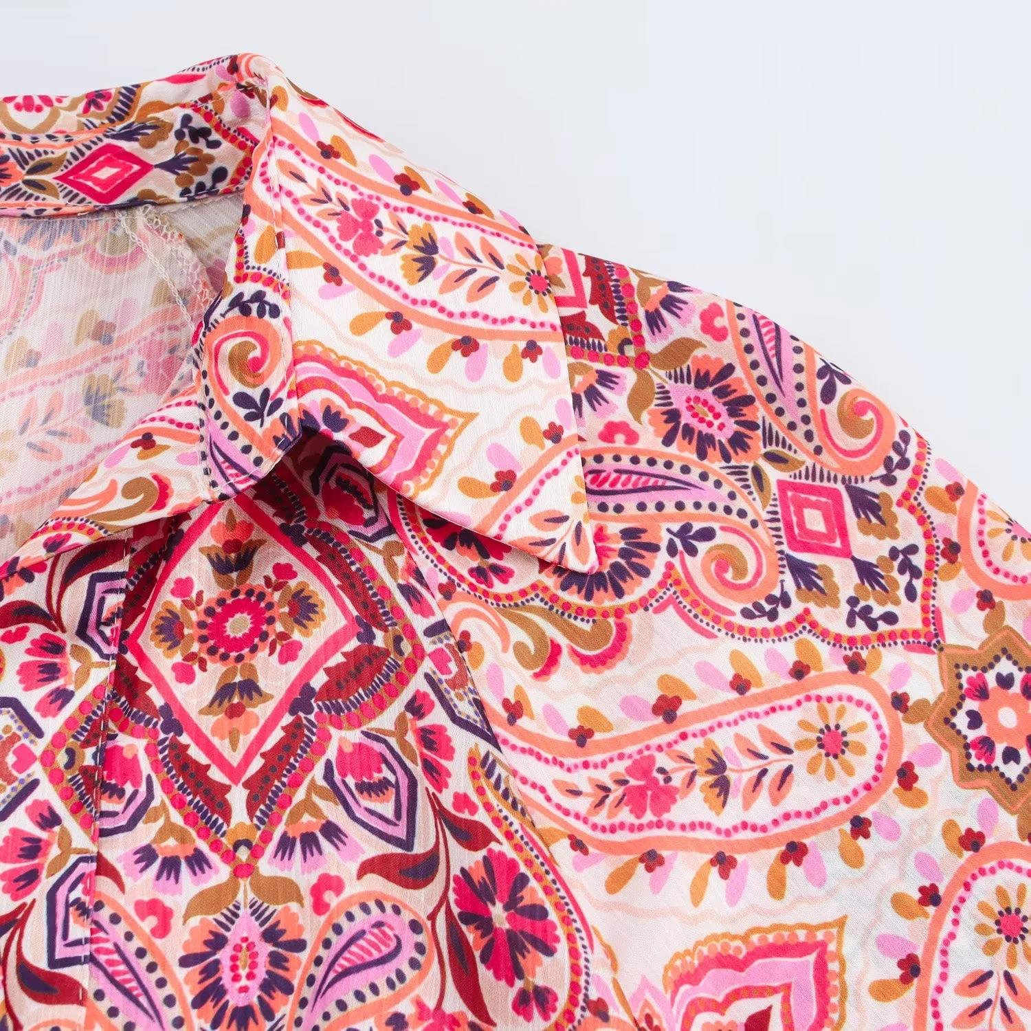 Geometric, Flowers, Printing, Paisley, Single-breasted, Leather Belt, Layered Skirt