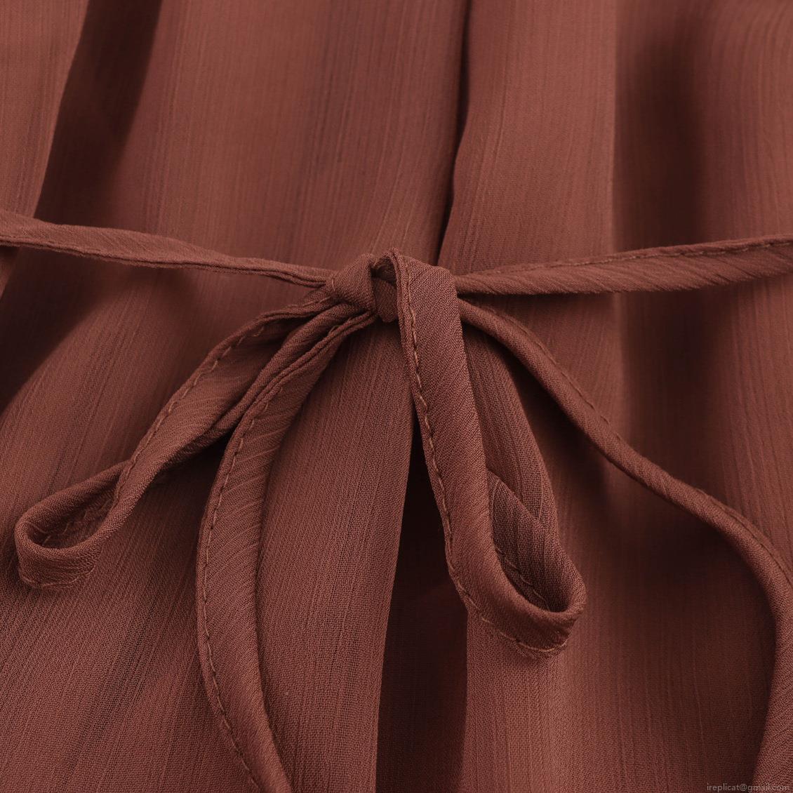 • Women's Bohemian Solid Color Chiffon Maxi Dress High Neck Tie Lantern Sleeve Tiered Ruffle Hem Long Dress With Belt For Vacation Party
