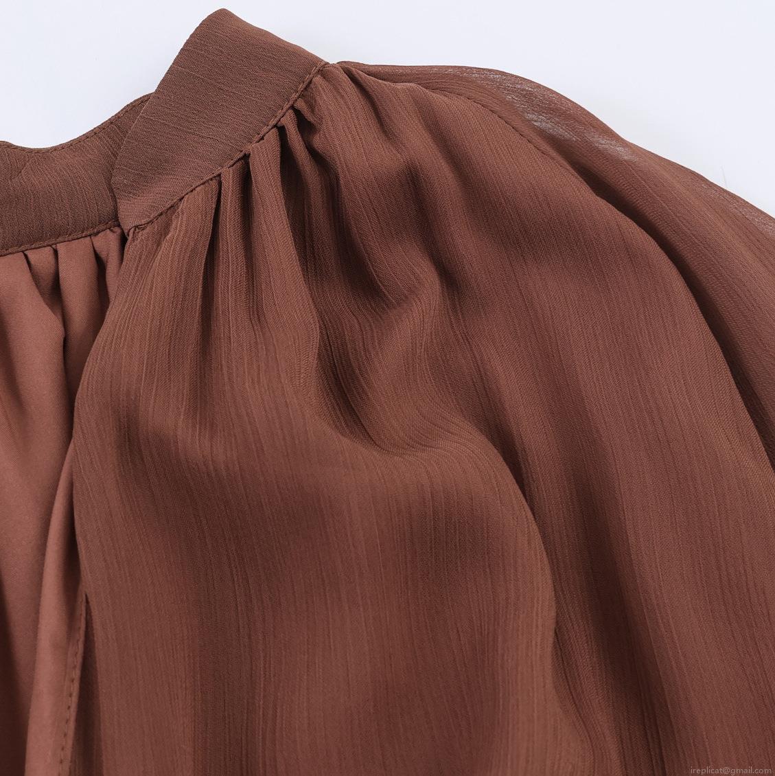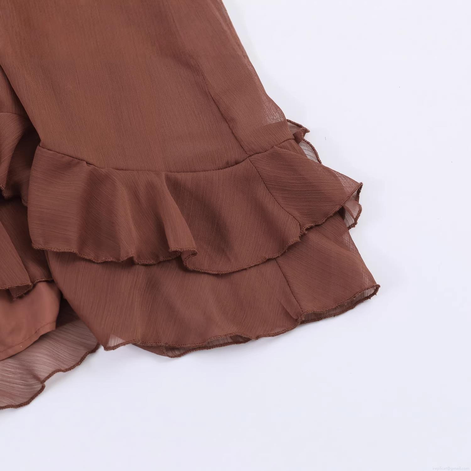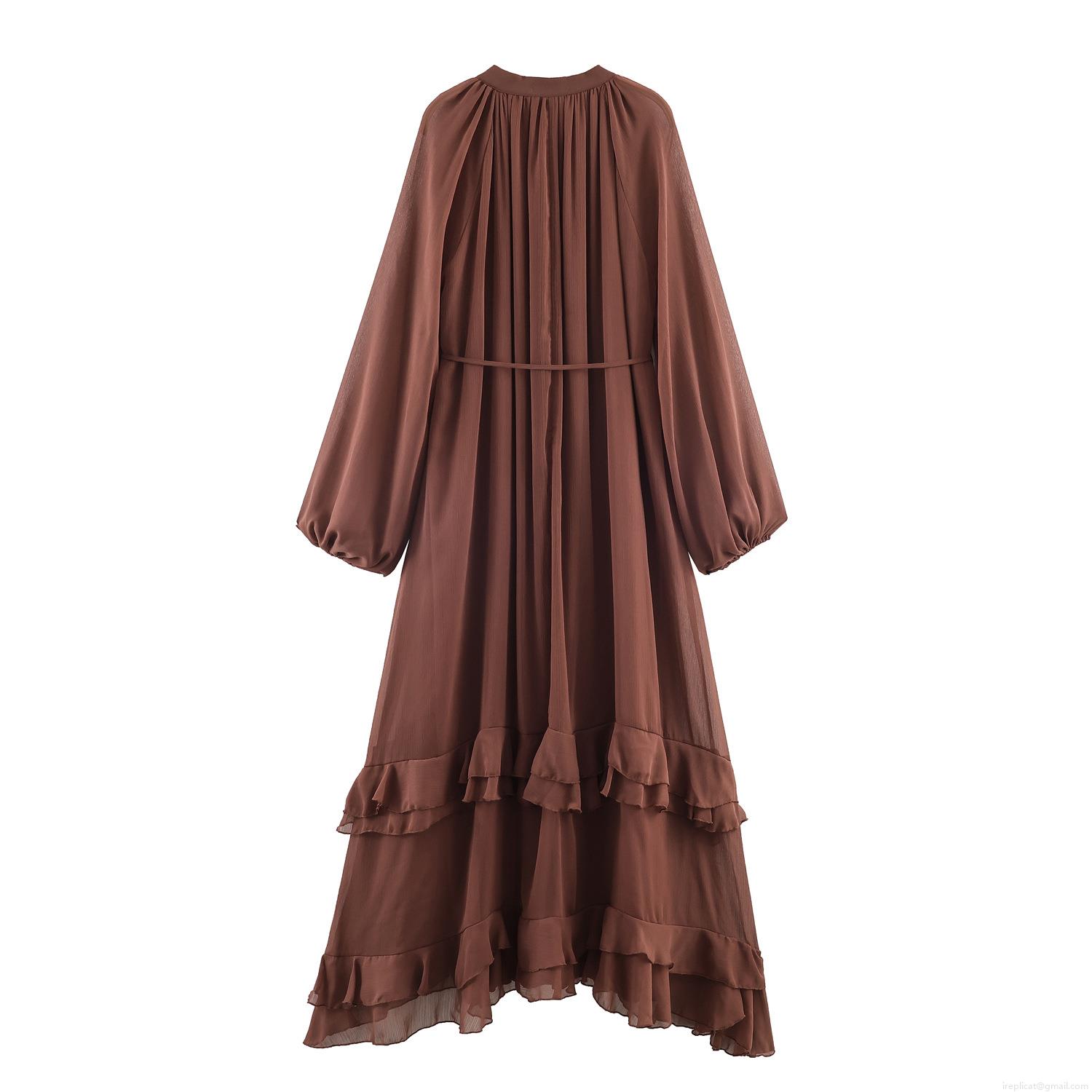 • Women's Bohemian Solid Dark Brown Chiffon Maxi Dress Elegant V-Neck Lantern Sleeve Tiered Ruffle Hem Long Swing Dress For Party Socialite Event