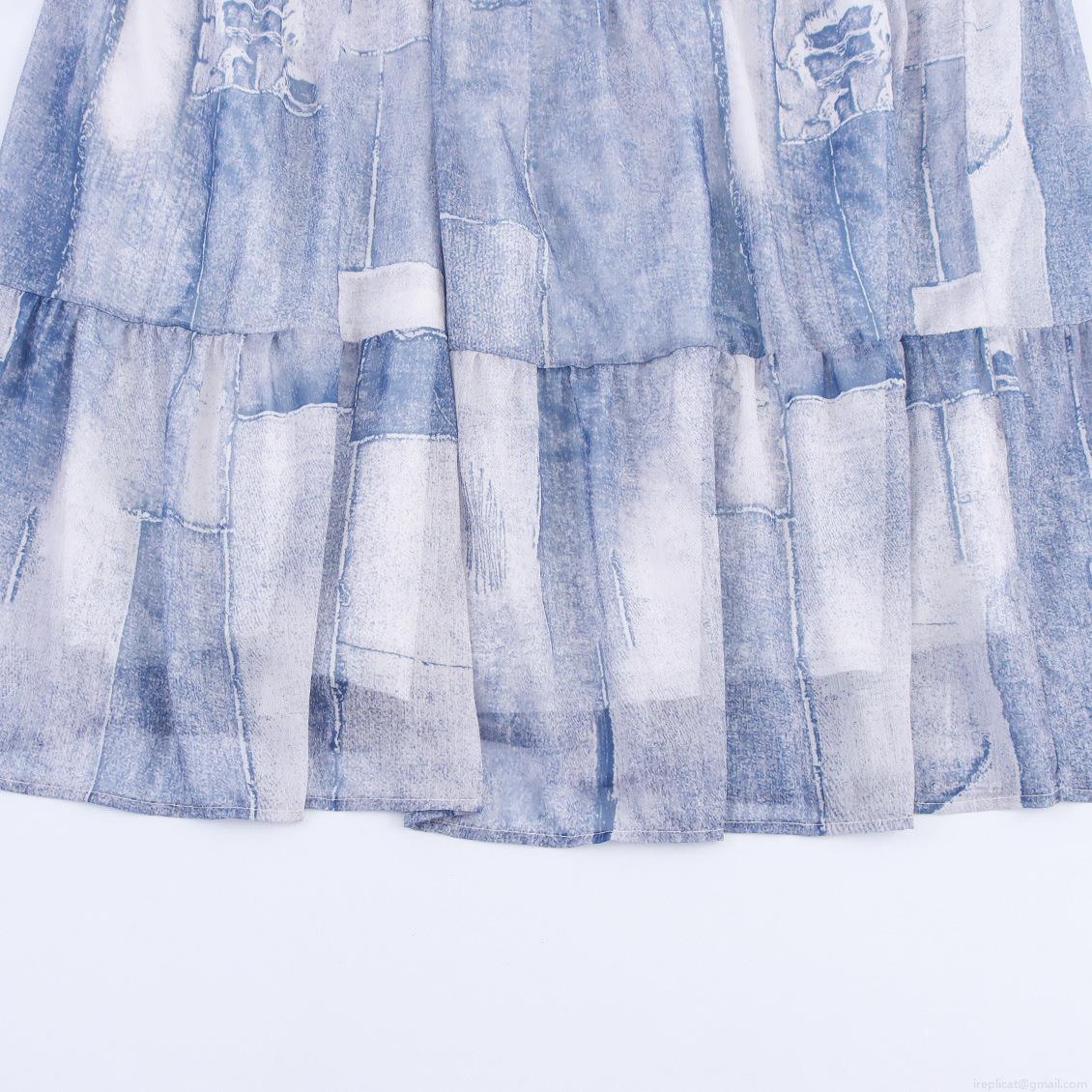 Splice, Smudge, Ruffles, Slab, Cake Skirt, Faux Denim Patchwork Print