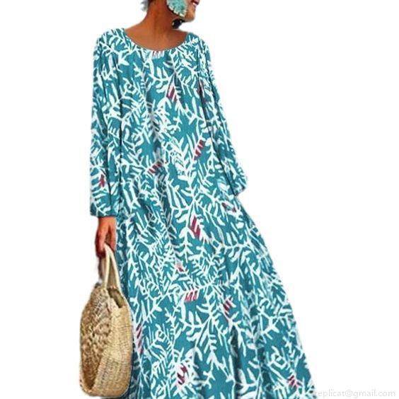 • Women's Boho Floral Print Maxi Dress Polyester Long Sleeve Round Neck Loose Casual Summer Holiday Beach Party Flowy Long Dress