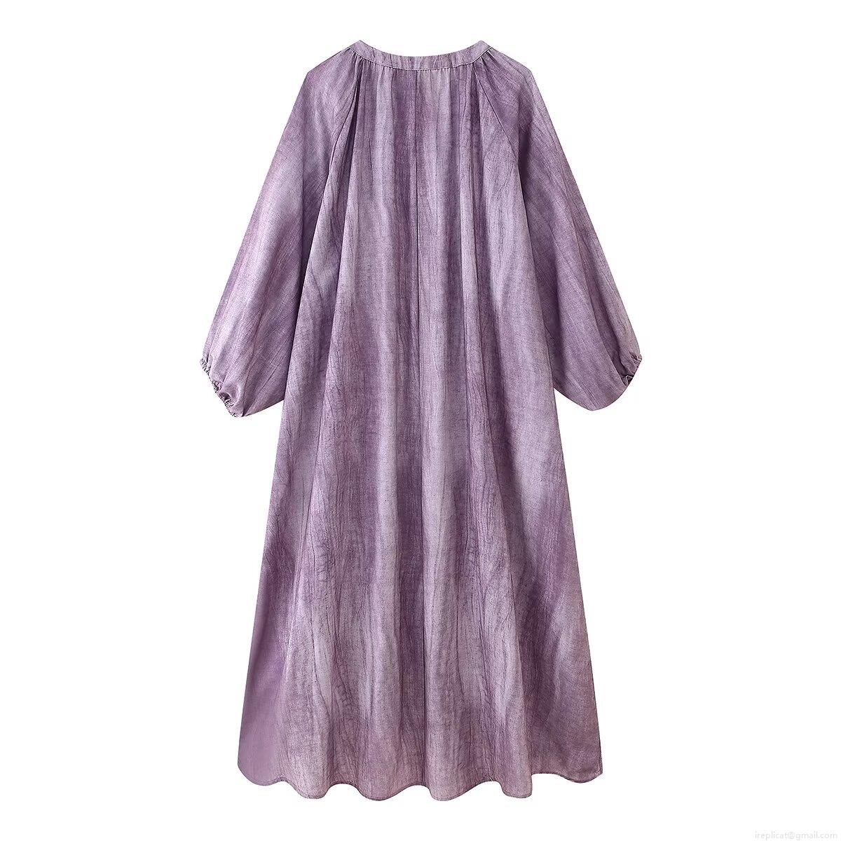 • Women's Casual Loose Long Sleeve Maxi Dress Polyester Spandex Blend Solid Purple Dress With White Drawstring Round Neck A-Line Long Dress For Women Autumn Spring