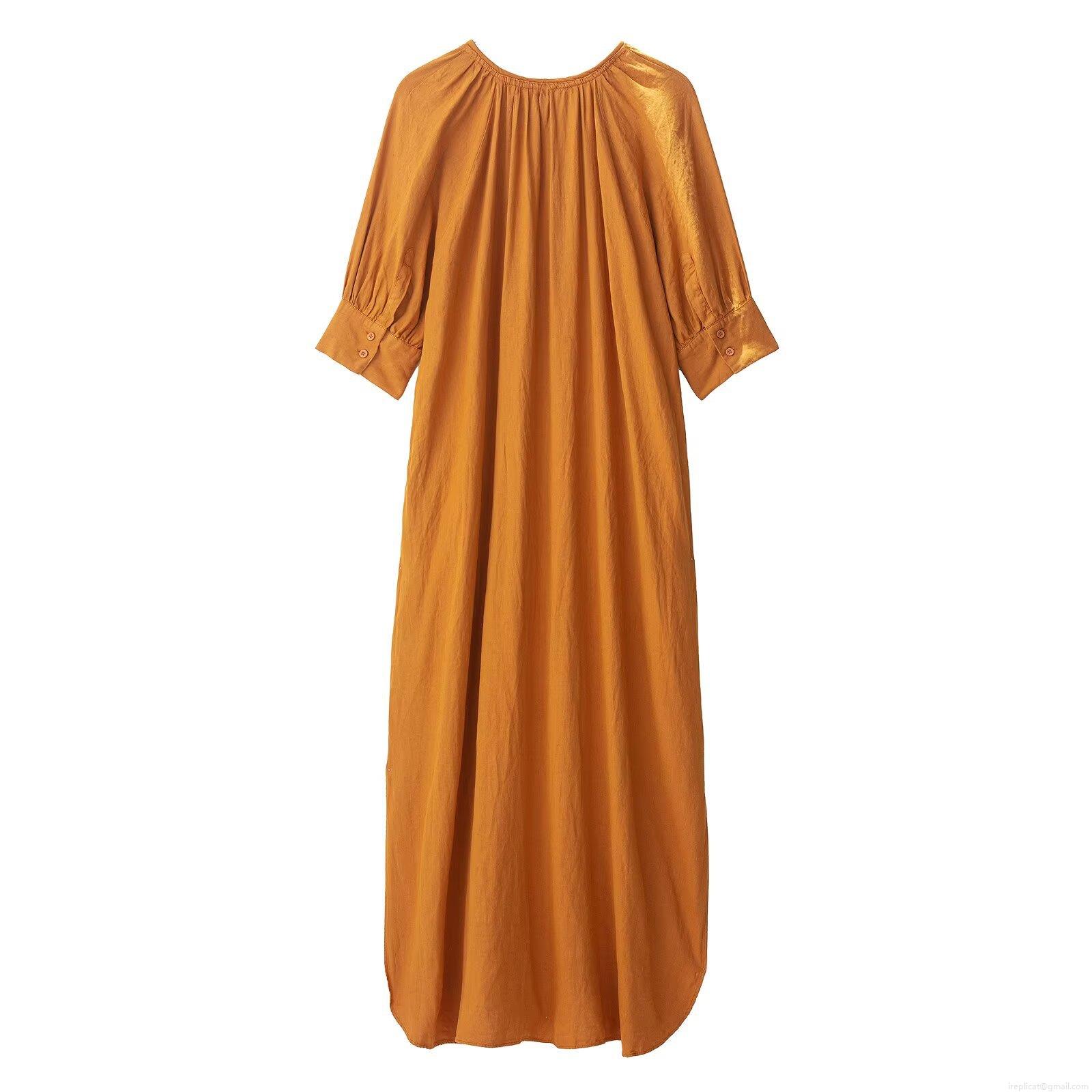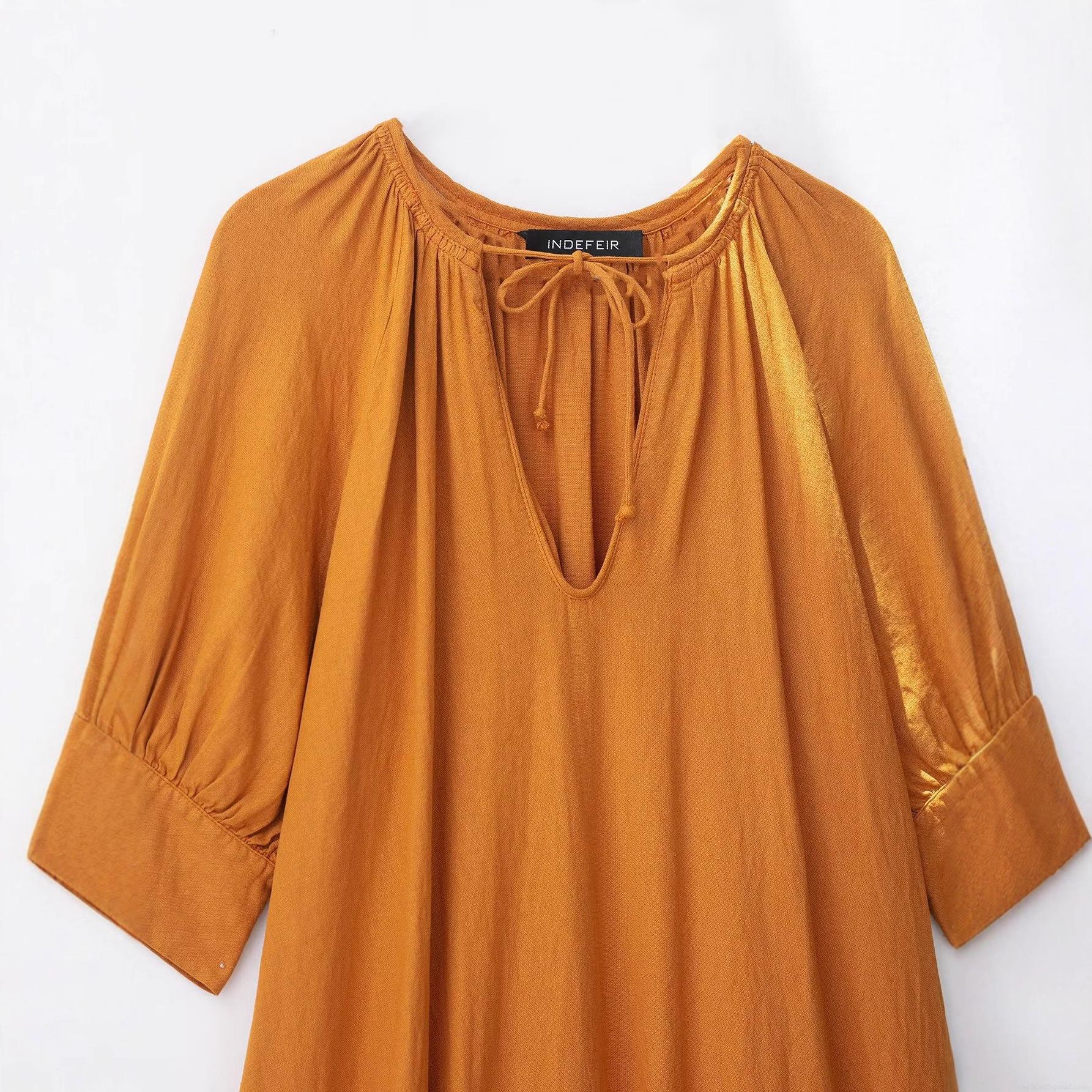 • Women's Casual Loose Maxi Dress V Neck Tie-Up Polyester Linen Texture Solid Color Long Sleeve Pullover A-Line Stitching Long Tunic Dress For Autumn Spring