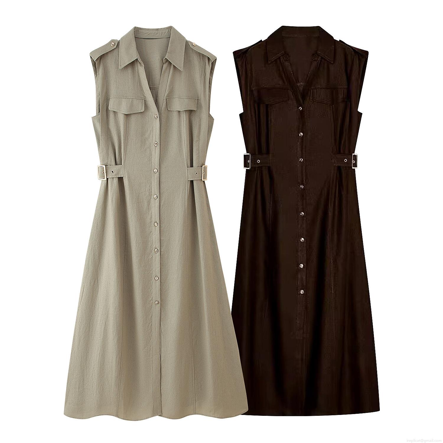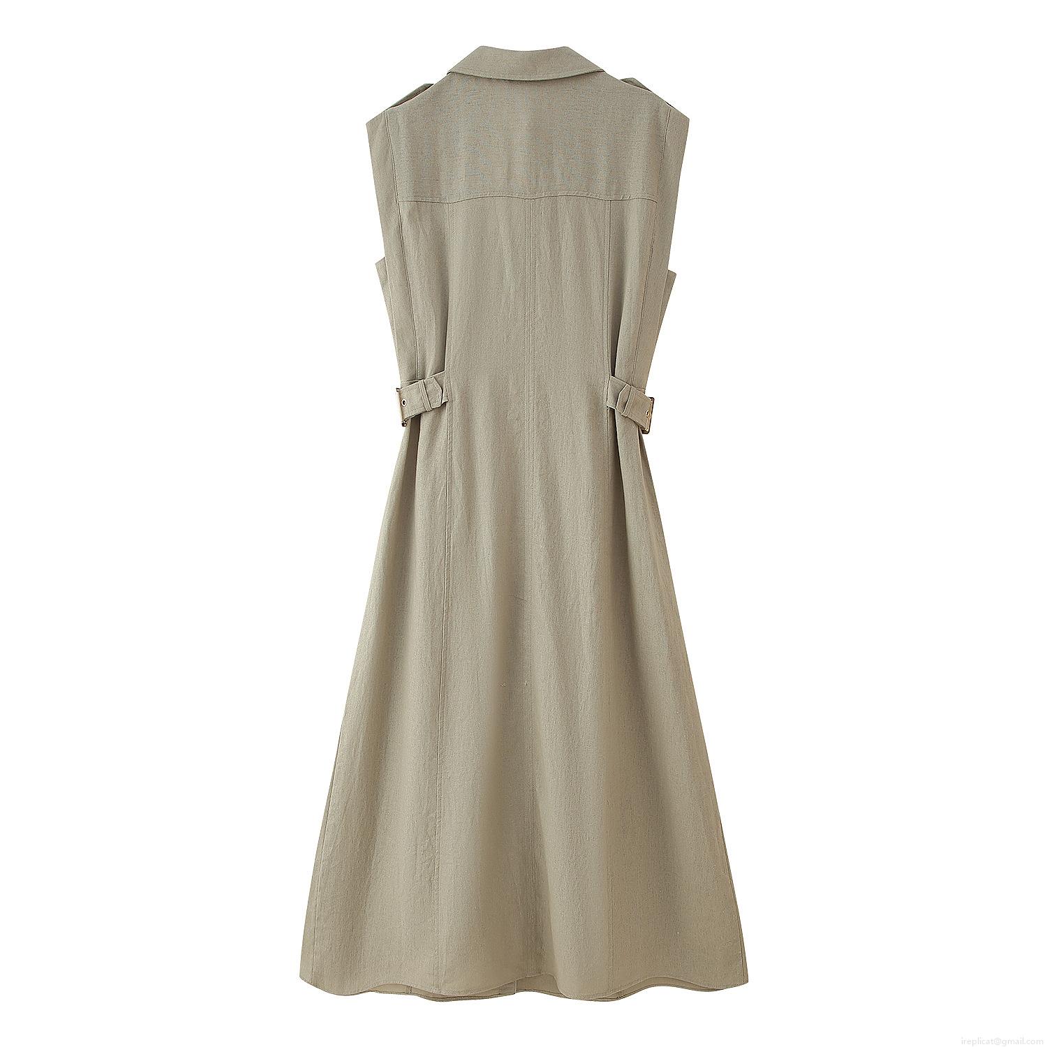 • Women's Casual Sleeveless Shirt Dress V Neck Button Down Maxi Dress With Flap Pockets Waist Adjuster Linen Blend A-Line Long Skirt For Women Daily Office Travel