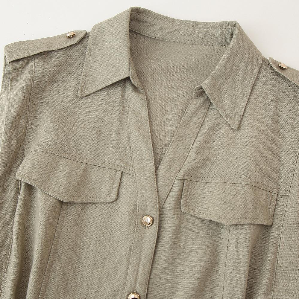 Solid Color, Pocket, Buttons, Shoulder Epaulettes, Lapel, Waist Adjustment Buckle