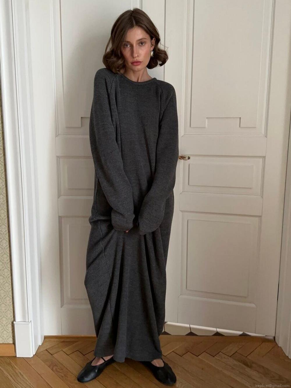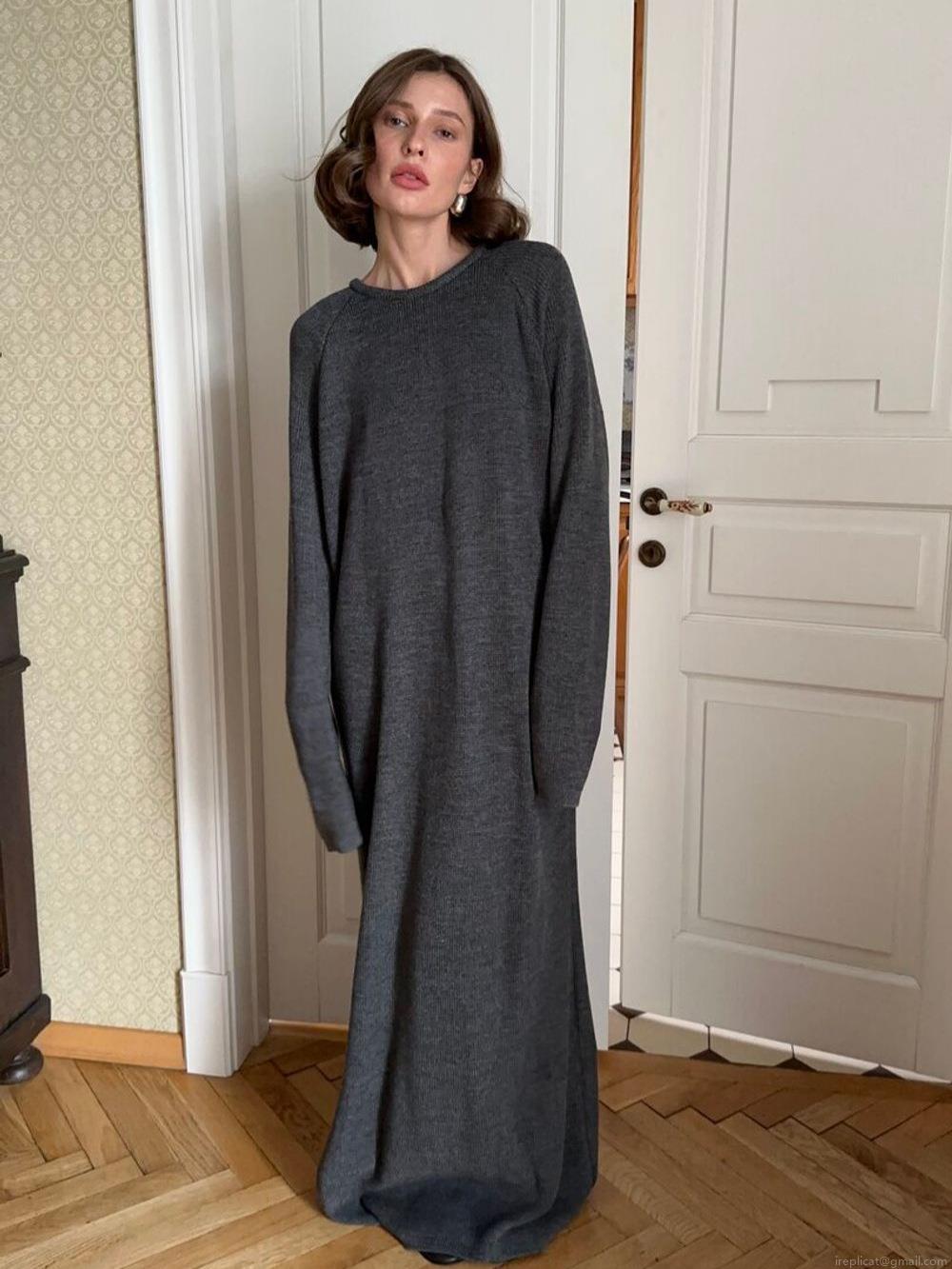 • Women's Chic Knitted Maxi Dress Round Neck Long Sleeve Loose Fit Solid Color Minimalist Cotton Polyester Blend Autumn Winter Sweater Dress
