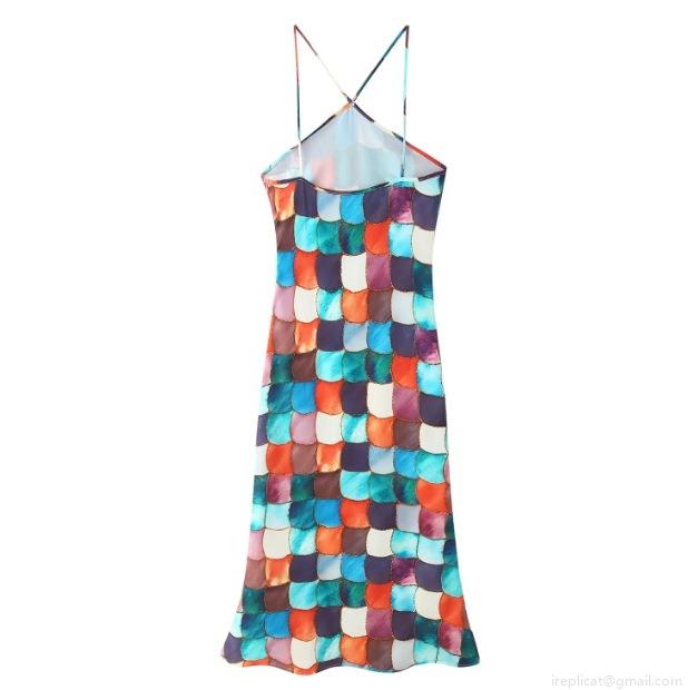 Digital, Geometric Patterns, Fish Scale Pattern, Backless, Cross Shoulder Straps, Neckband Design