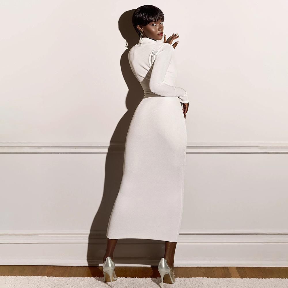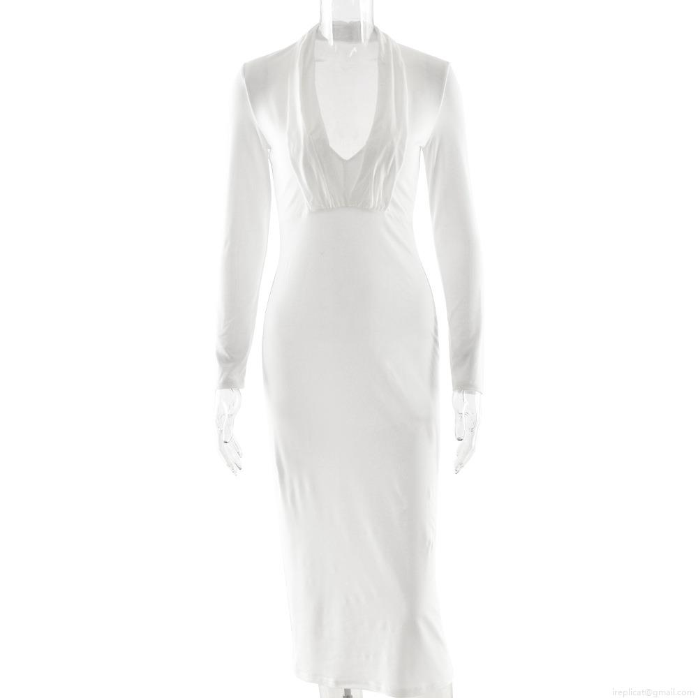 • Women's Deep V Neck Long Sleeve Maxi Dress Ruched Slim Fit Bodycon Sexy Elegant Solid Color Club Party Evening Dress For Women