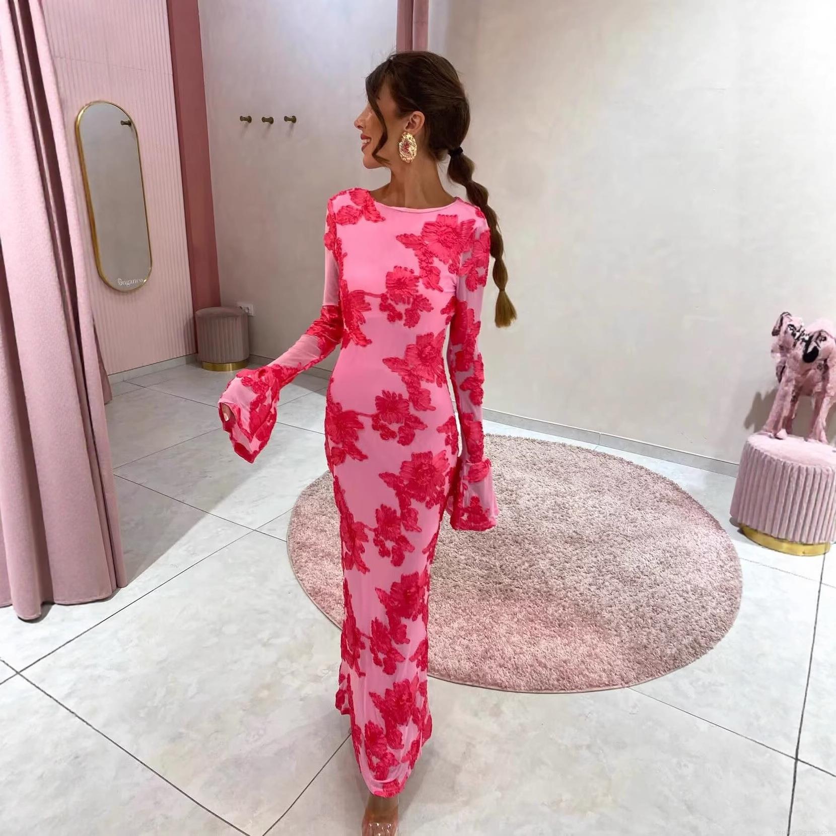 Three-dimensional Flowers, 3d Flowers, Bell Sleeves, Floor-length Dress, Bodycon Slimming