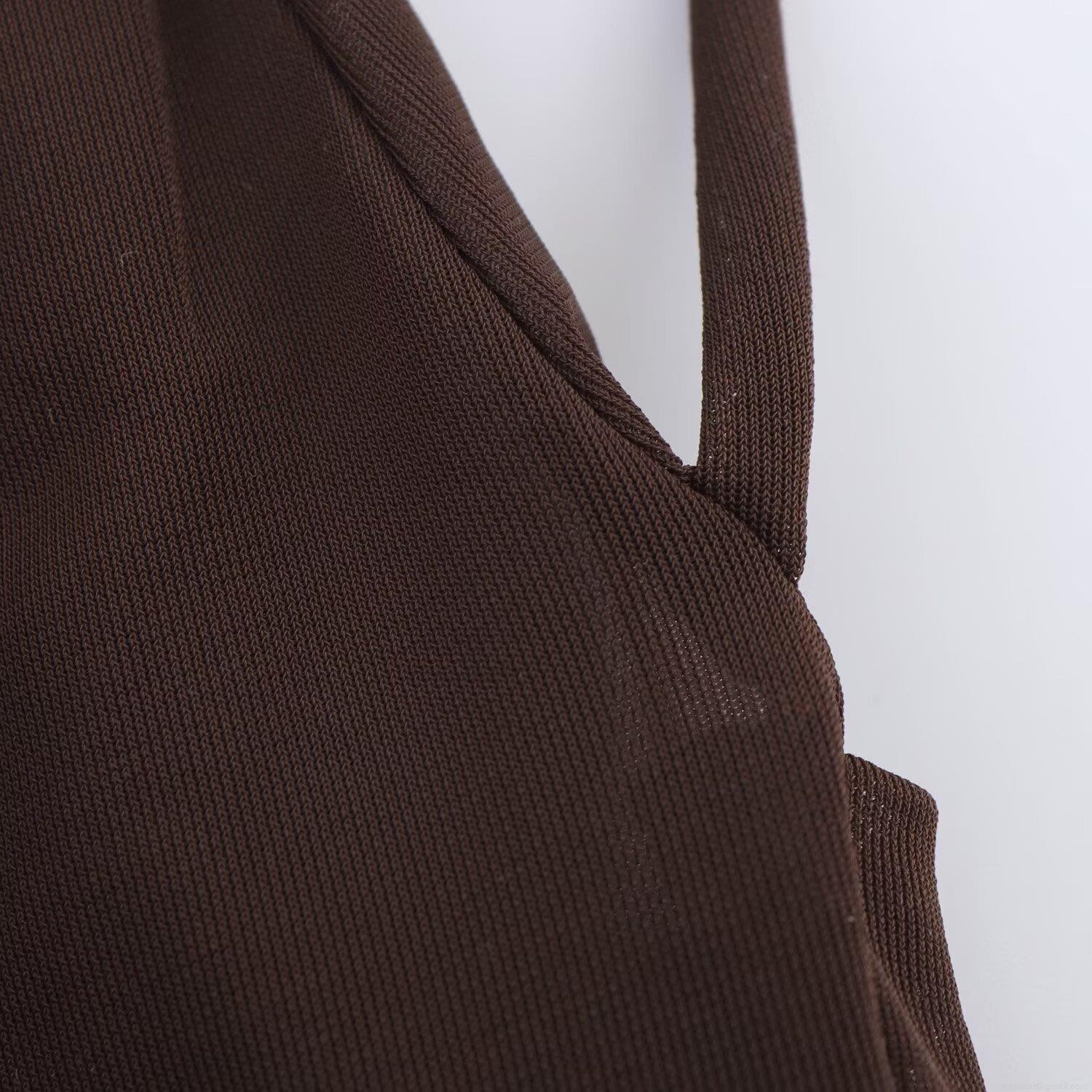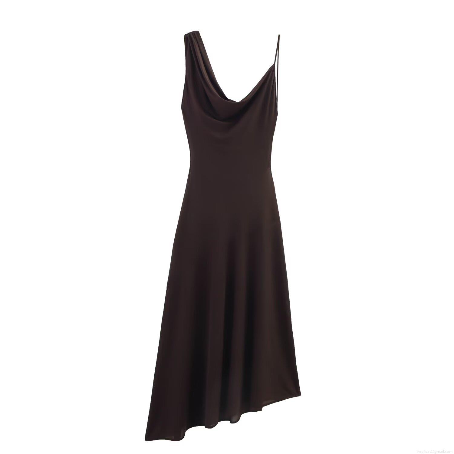 • Women's Elegant Asymmetric Cowl Neck Maxi Dress Sleeveless Side Ruching Sexy Mesh Party Evening Long Dress Coffee Brown