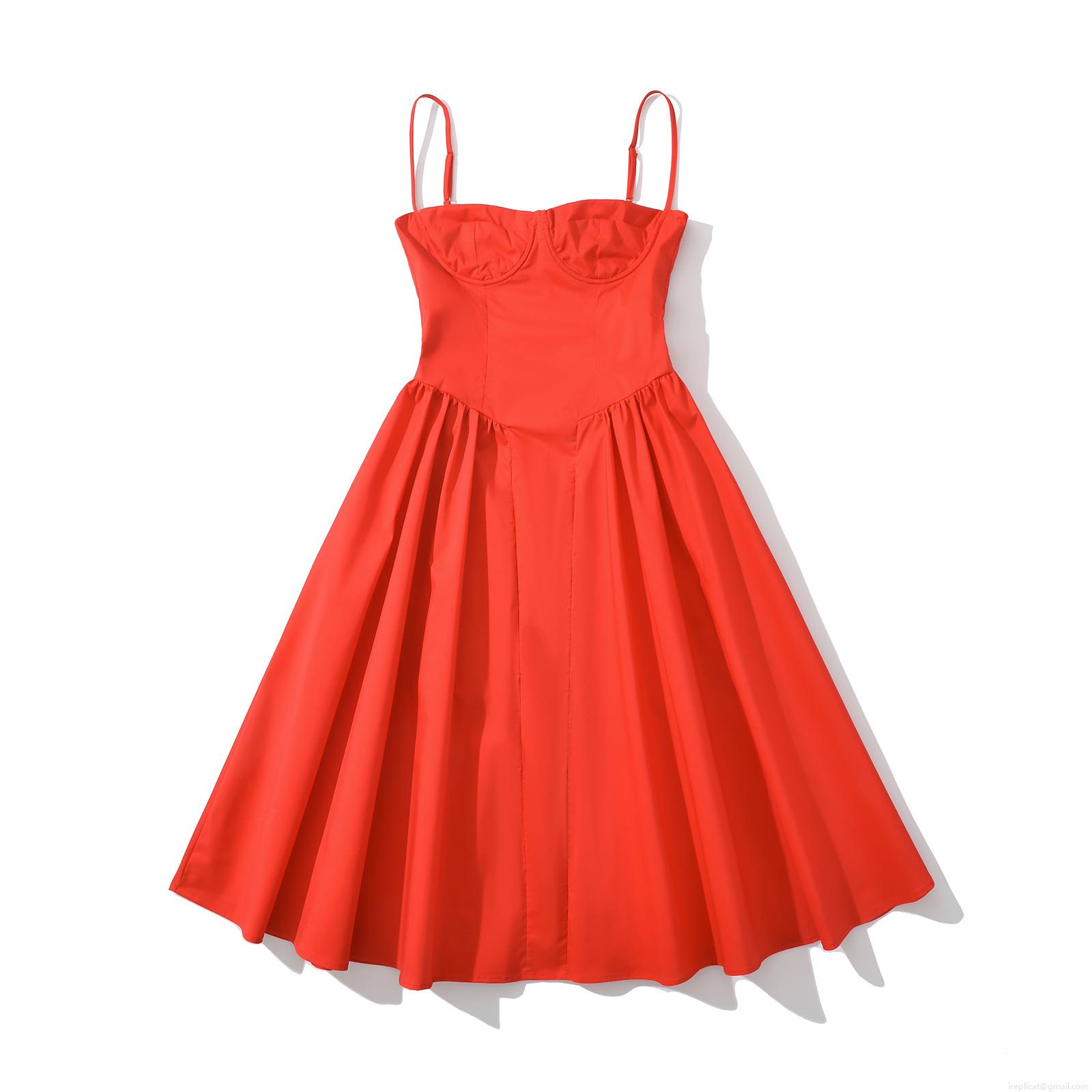 Solid Color, Waist shaping, Suspenders, Backless, Large Pleats