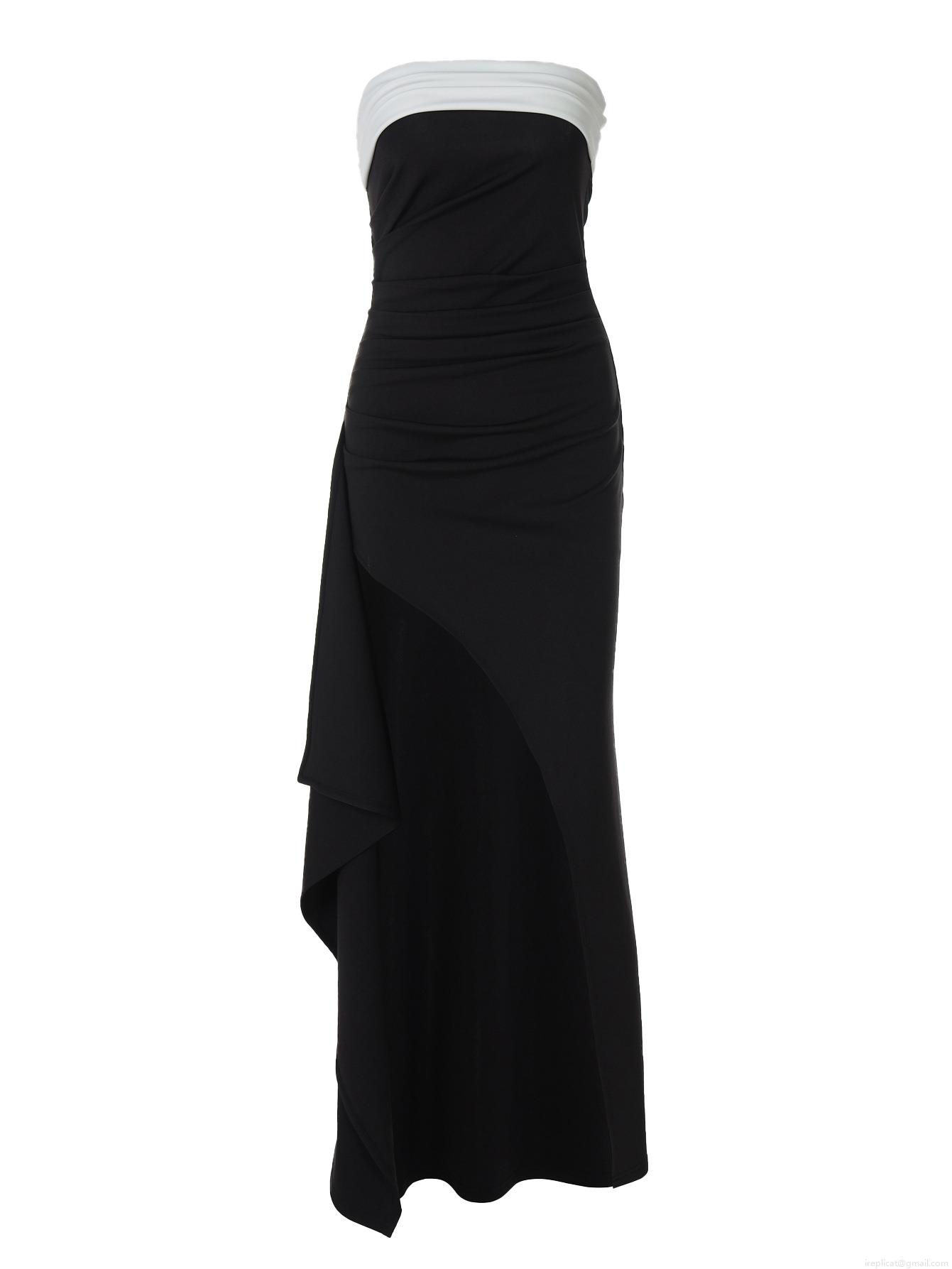 • Women's Elegant Bandeau Maxi Dress Contrast Color Pleated High Split Slim Fit Tube Top Evening Party Gown 95% Polyester 5% Spandex Floor Length Sleeveless Formal Dress