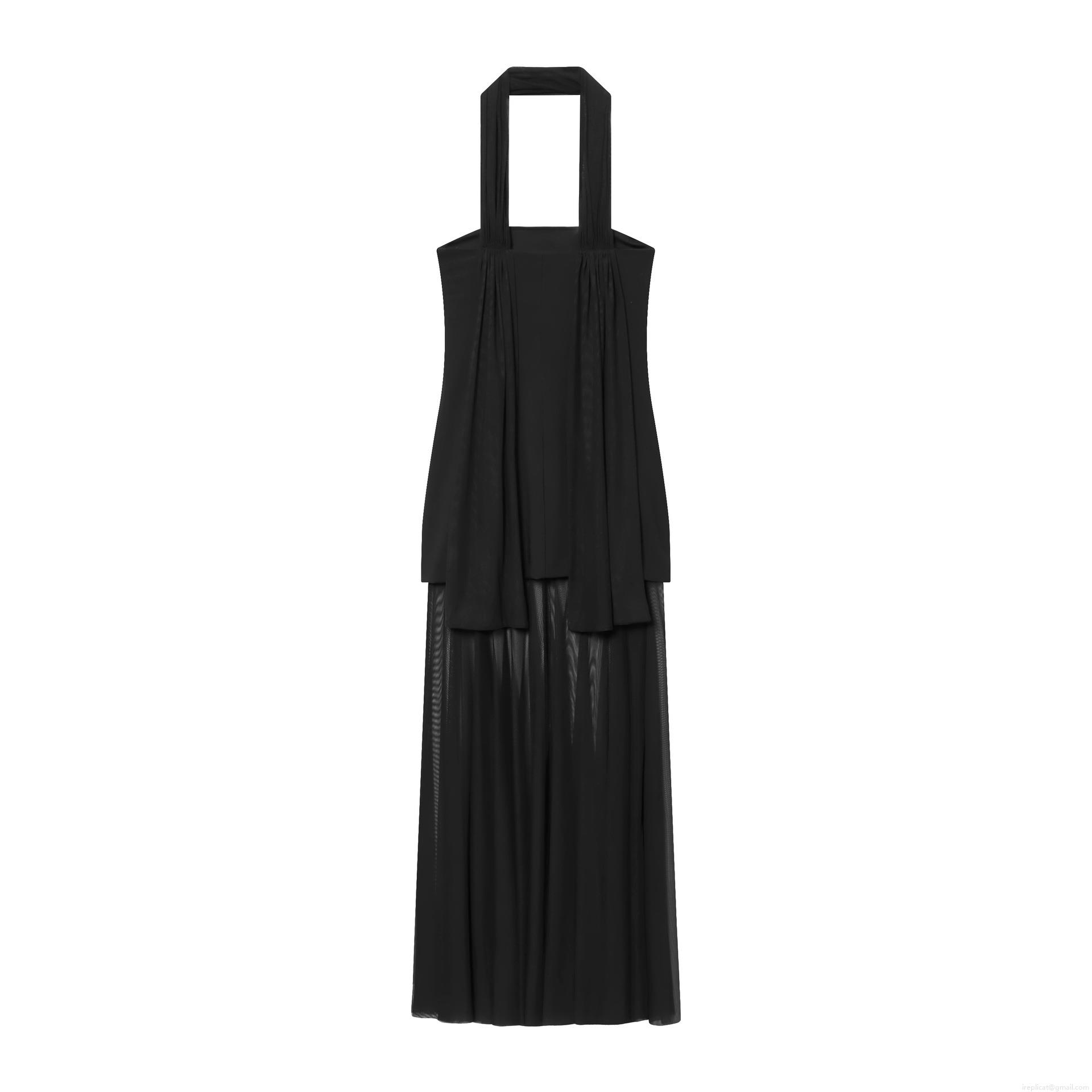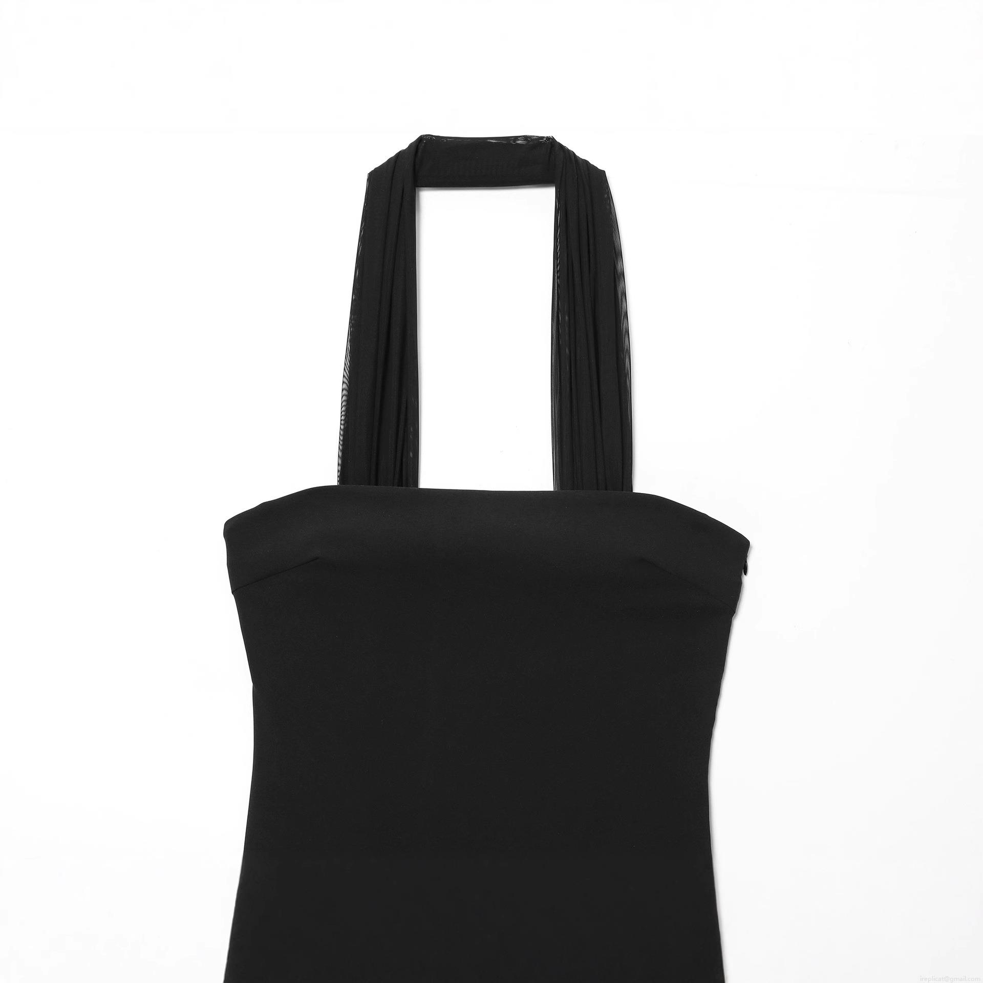 Women's Elegant Black Halter Neck Maxi Dress Patchwork Mesh Transparent Long Evening Gown For Banquet Party Sexy Celebrity Style
