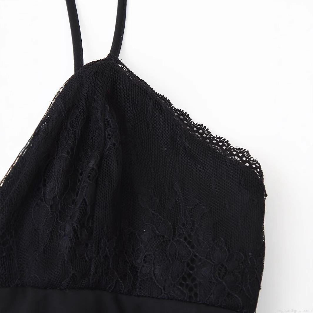 Solid Color, V-neck, Suspenders, Backless, Lace Patchwork