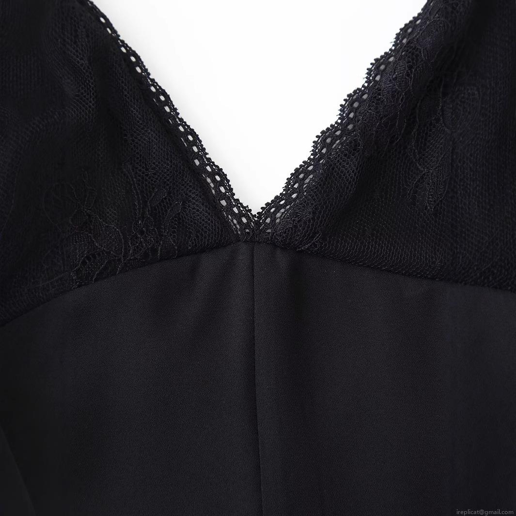 • Women's Elegant Black V-Neck Lace Patchwork Maxi Dress Sexy Backless Satin Finish Slip Dress For Evening Party Clubwear