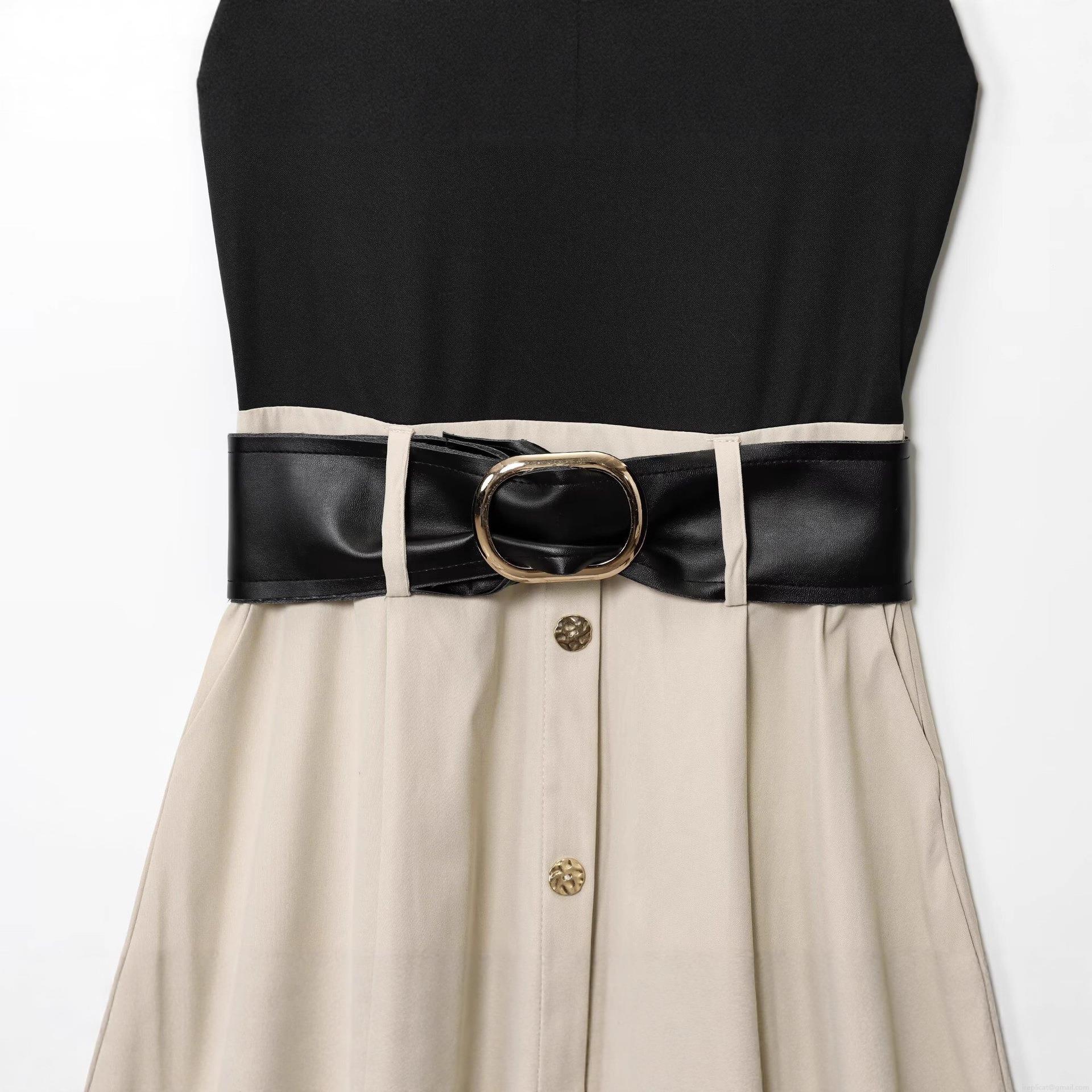 Color Blocking Design, Color Blocking, Button Decoration, Metal Belt Buckle