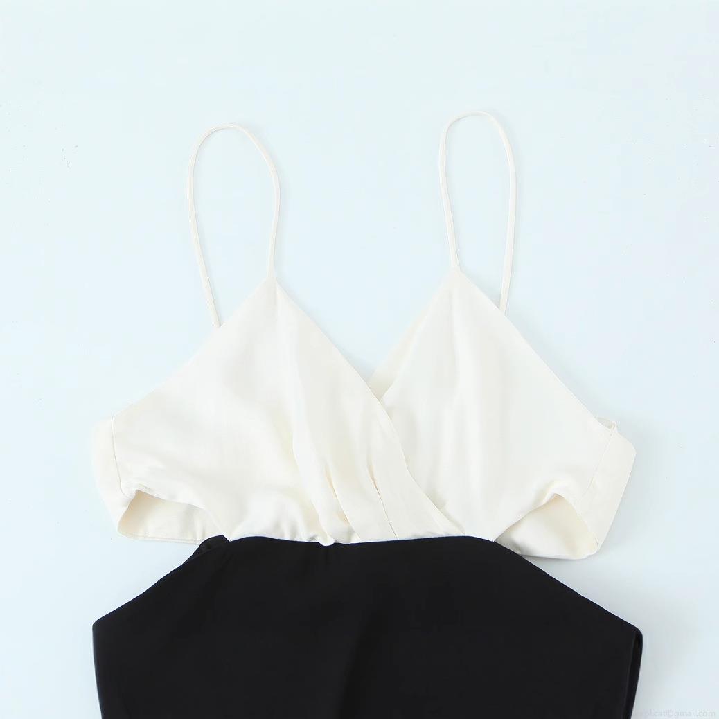 • Women's Elegant Colorblock Maxi Dress Sexy V-Neck Spaghetti Straps Cut-out Waist Slim Fit Polyester Long Dress For Summer Party Vacation Clubwear