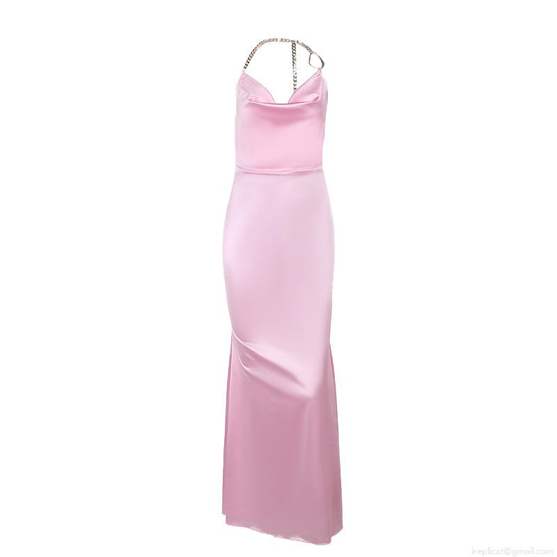 • Women's Elegant Cowl Neck Satin Maxi Dress Sexy Backless Slim Fit Metal Chain Strap Long Dress for Vacation Evening Party Wedding Guest Luxury Pink Dress