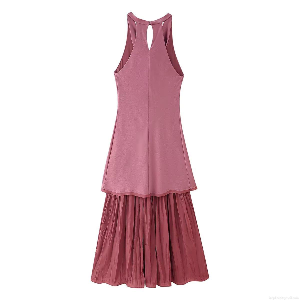• Women's Elegant Cowl Neck Sleeveless Satin Patchwork Maxi Dress Pleated Bodycon Long Evening Party Dress For Ladies Autumn Fashion