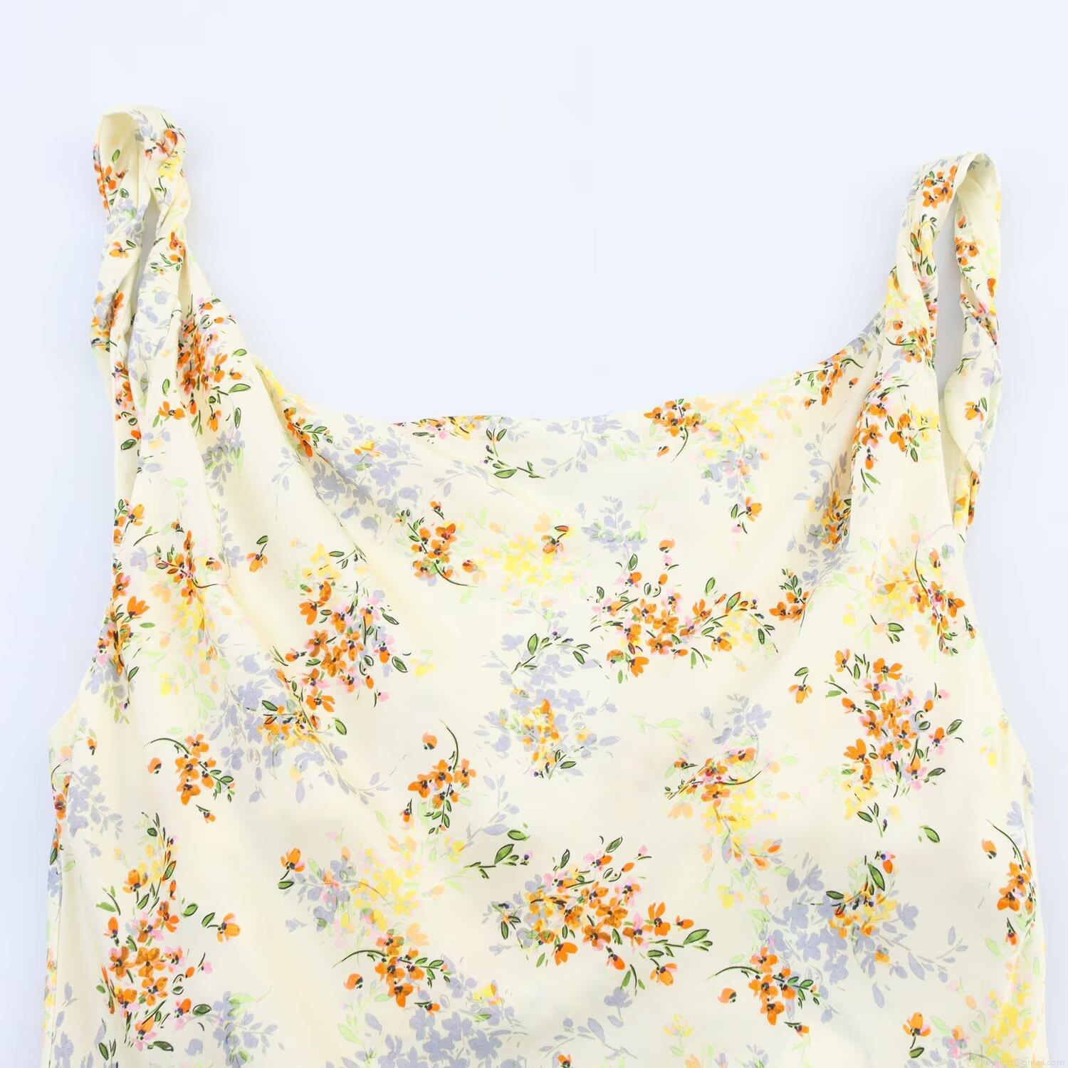 Floral Pattern, Printing, Thin Straps, Dangling, Silk Satin Texture