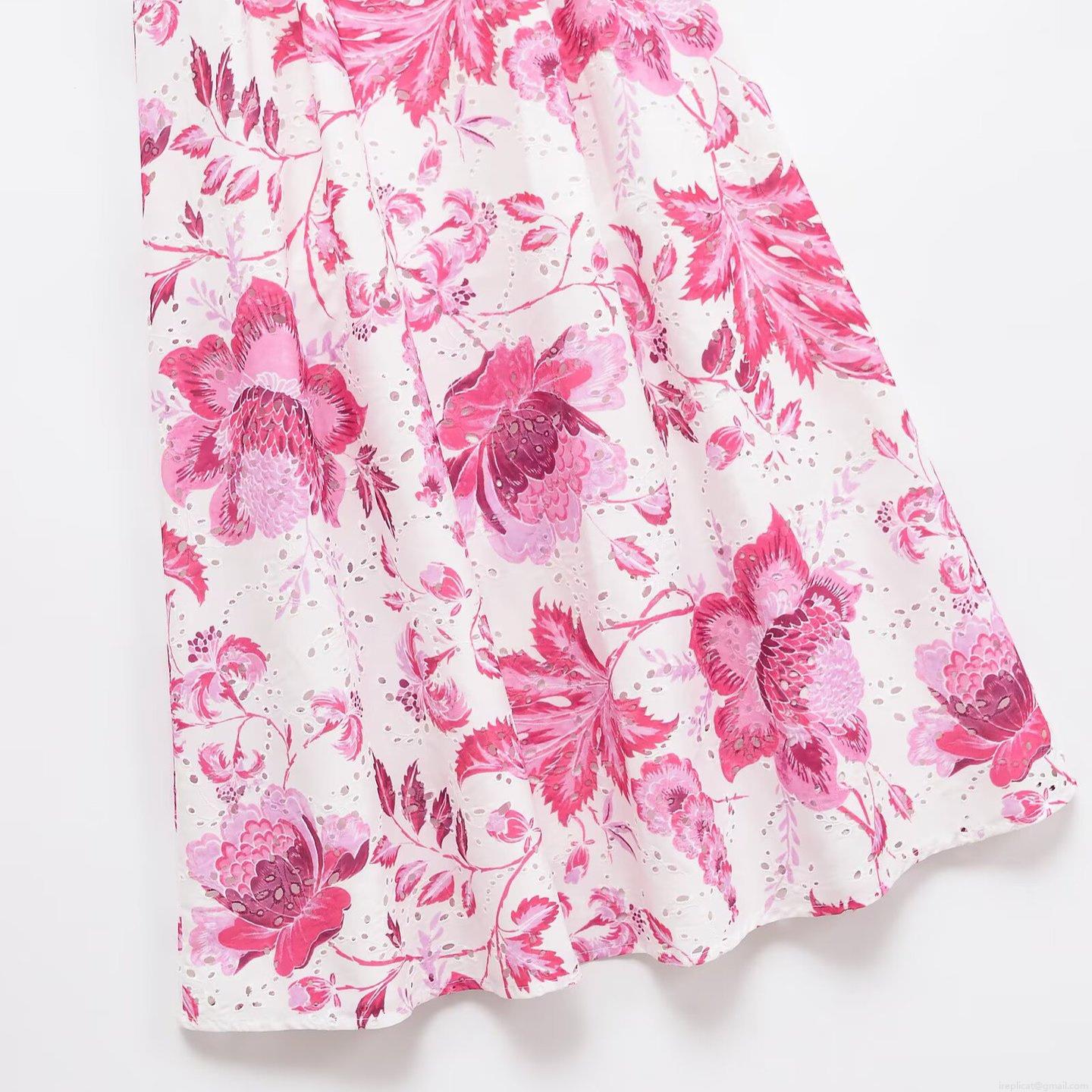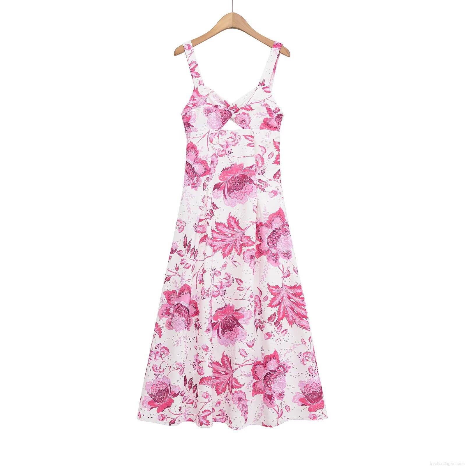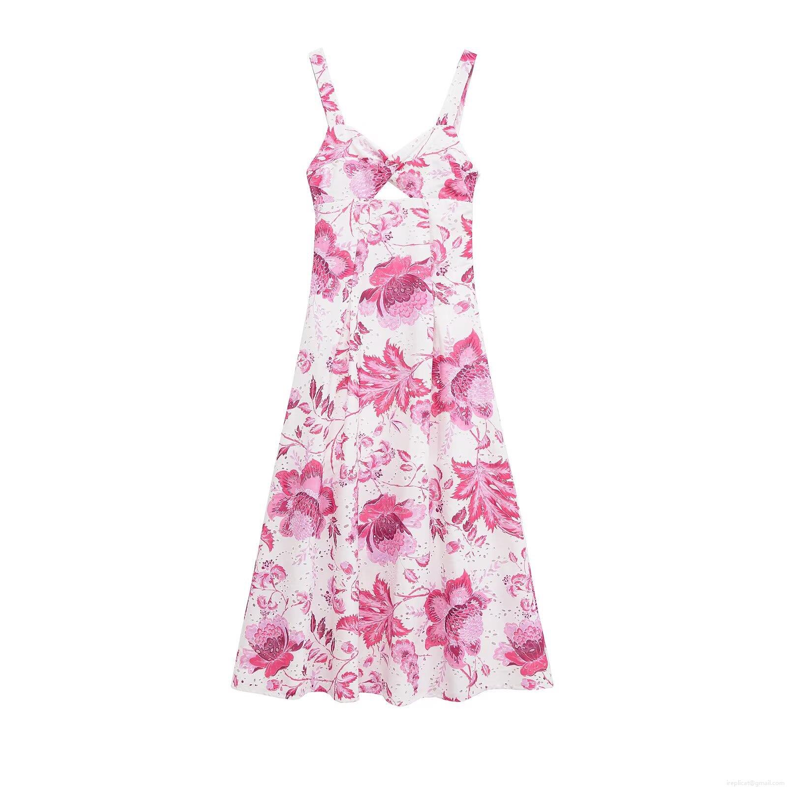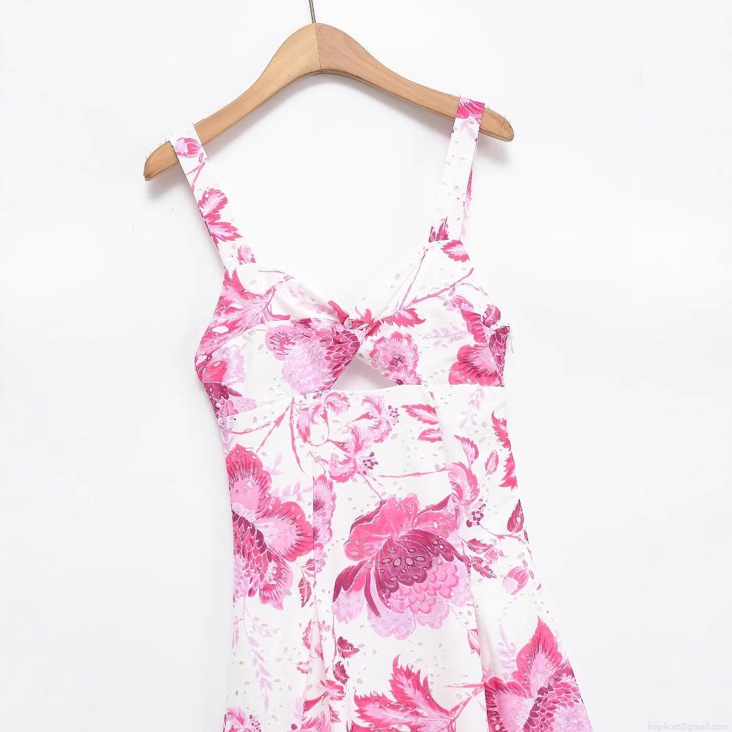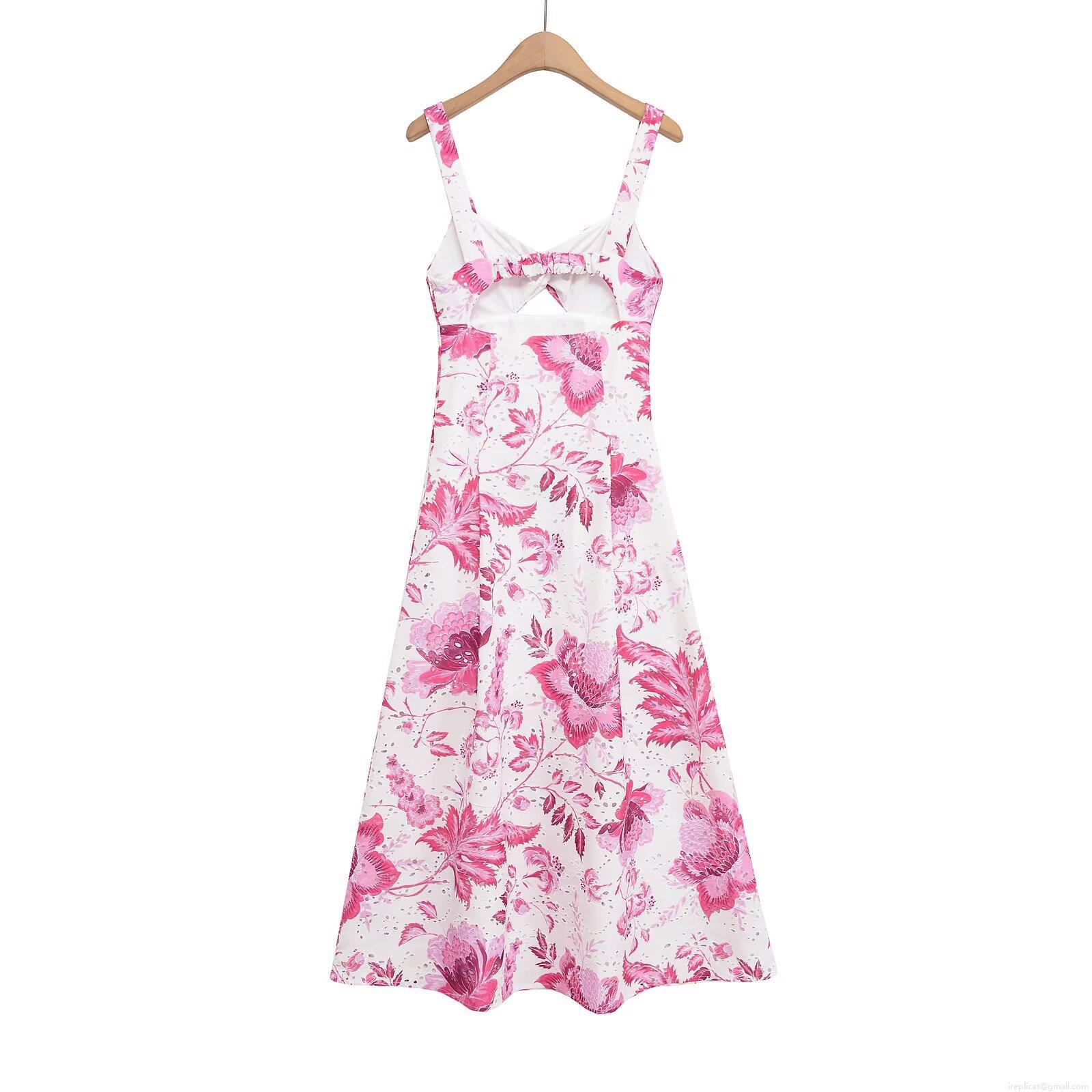 • Women's Elegant Eyelet Embroidery Floral Print Maxi Dress Spaghetti Strap V Neck Cutout Backless Summer Vacation Party Lady Dress