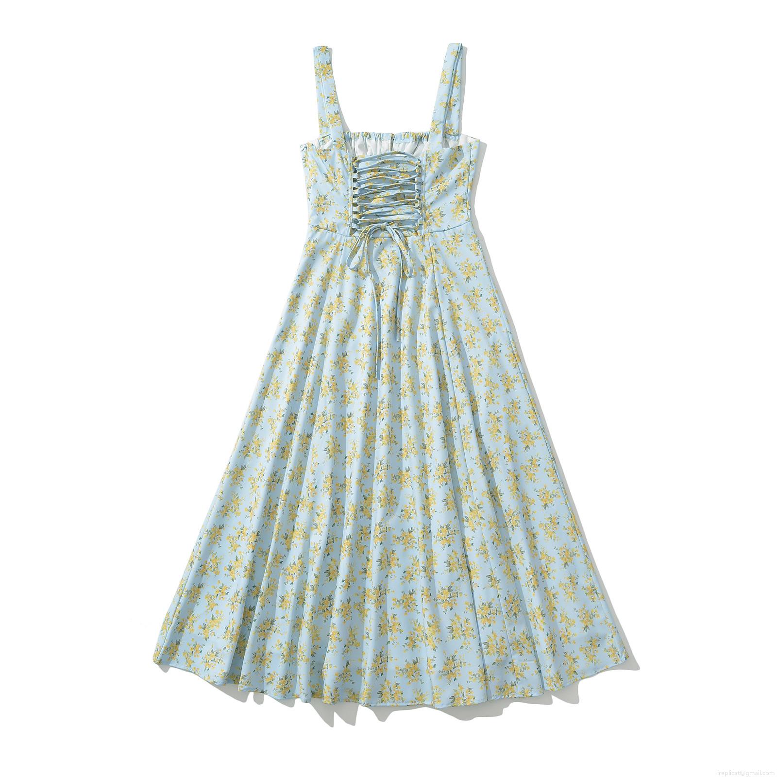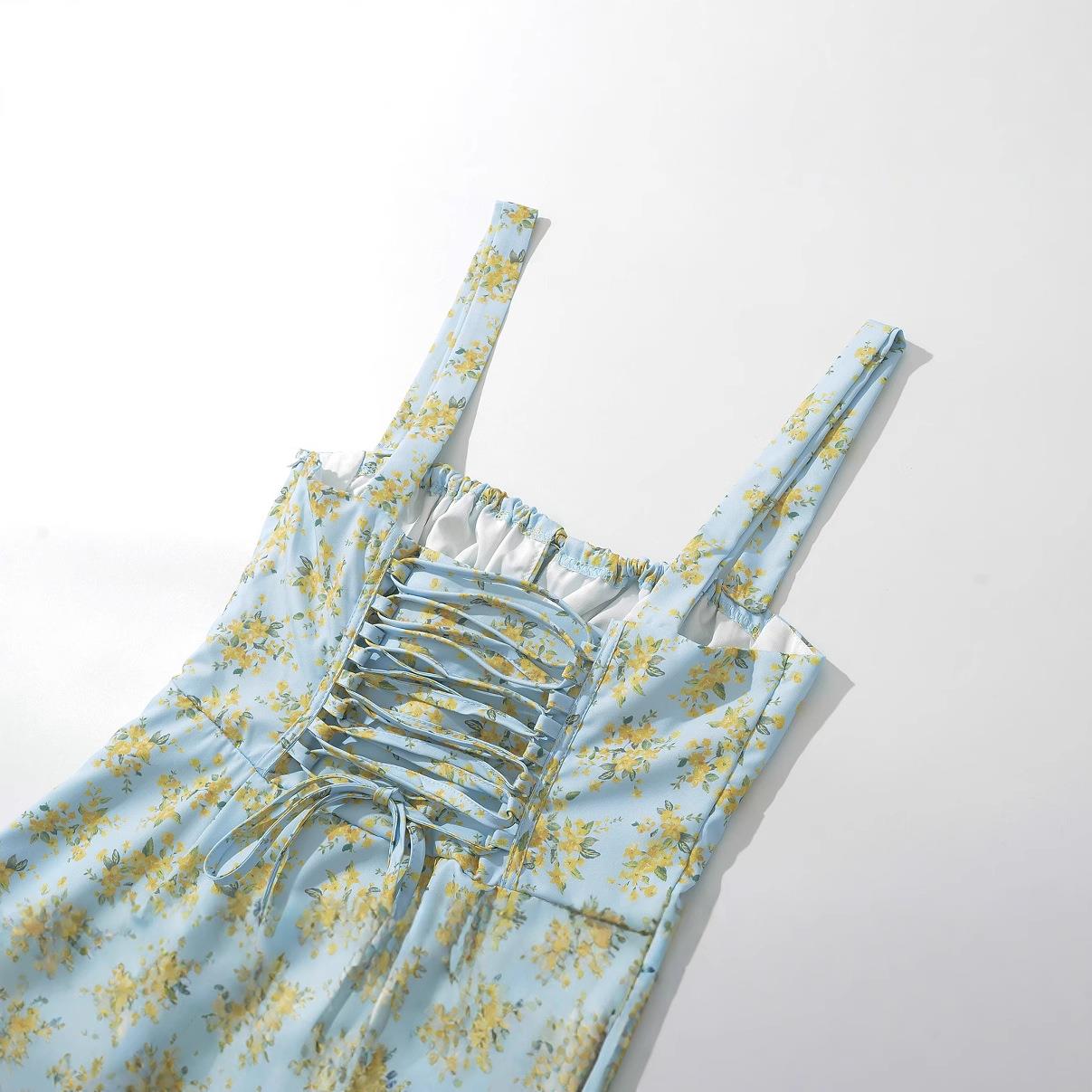 • Women's Elegant Floral Camisole Maxi Dress Backless Cross Strap Slim Fit Polyester Sleeveless Long Sundress for Summer Beach Vacation Party
