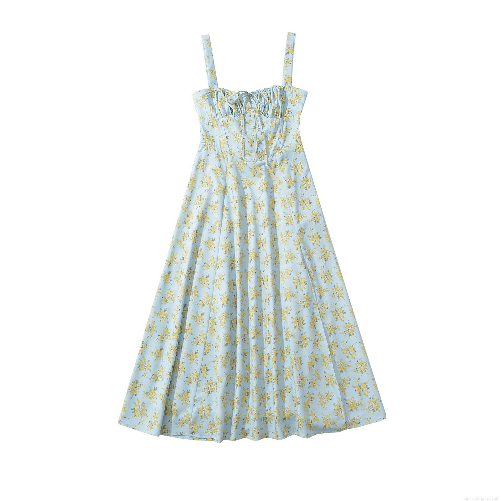 Floral Pattern, Pleats, Waist shaping, Back Cross Straps