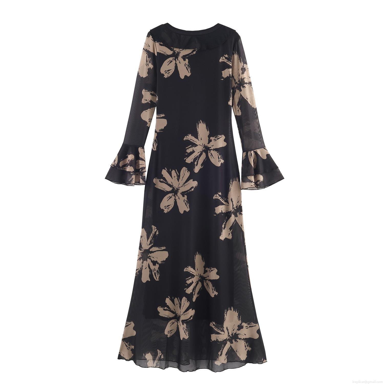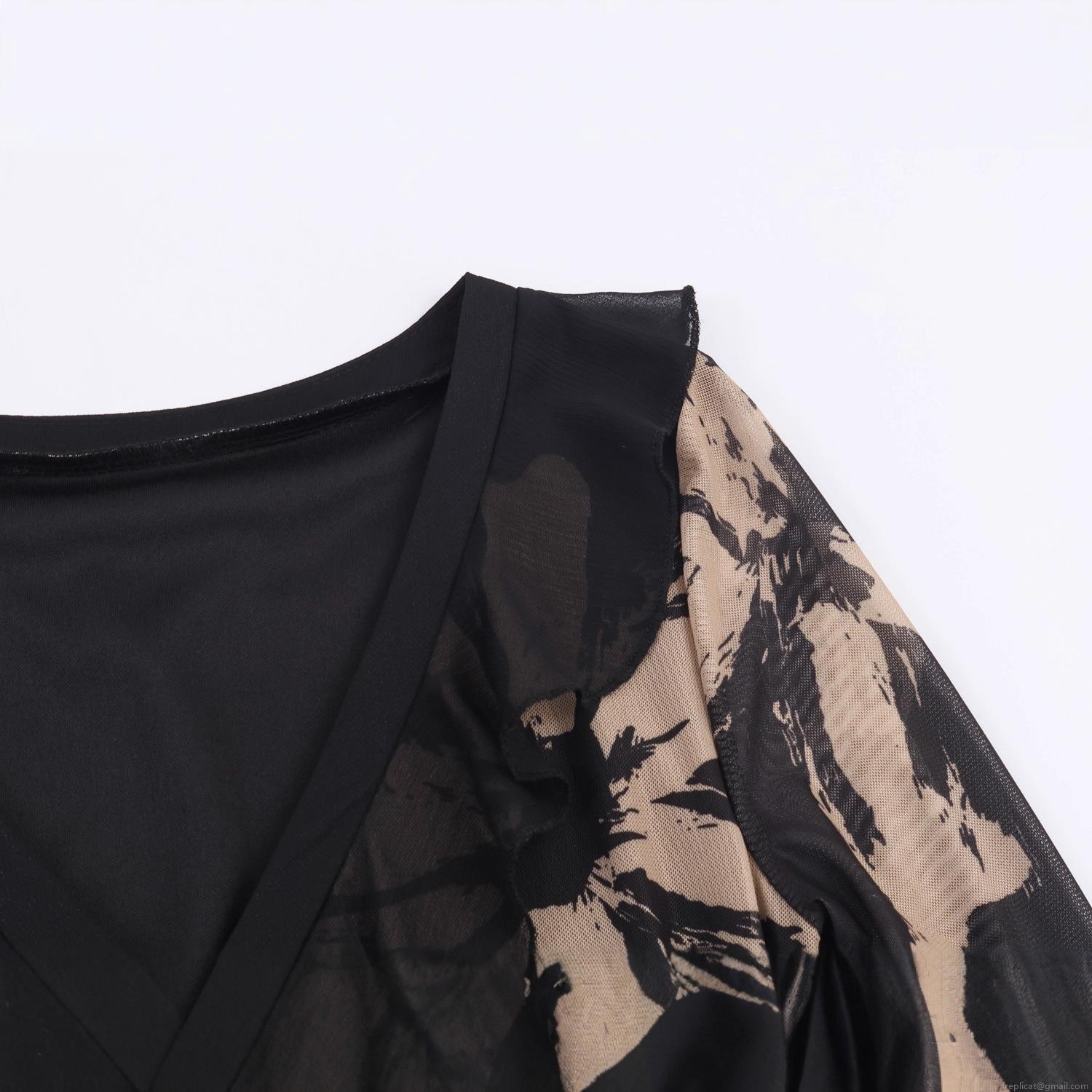 • Women's Elegant Floral Print Bodycon Maxi Dress V-Neck Long Sleeve Mesh Splicing Ruffles Bow Tie Sexy Slim Fit Party Dress
