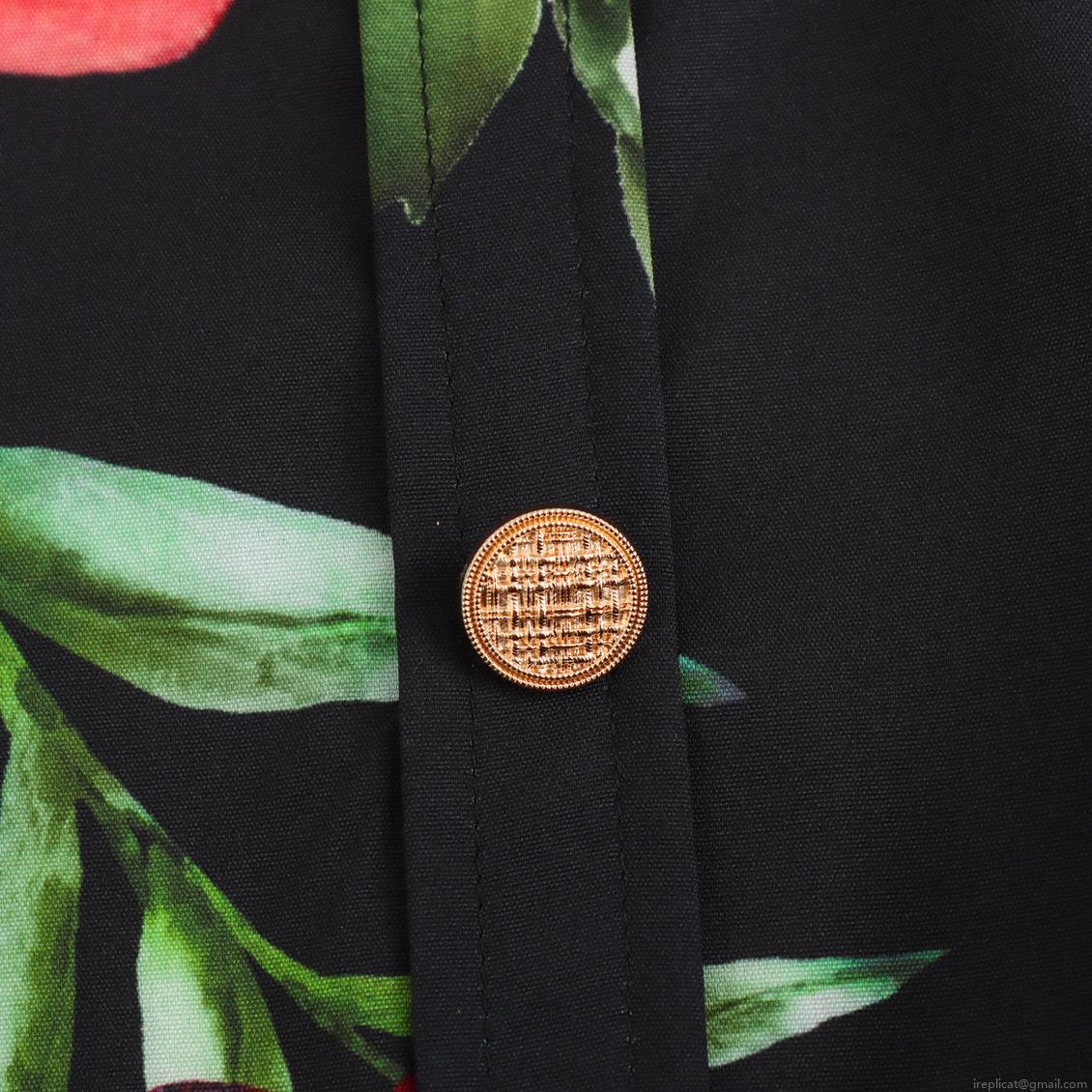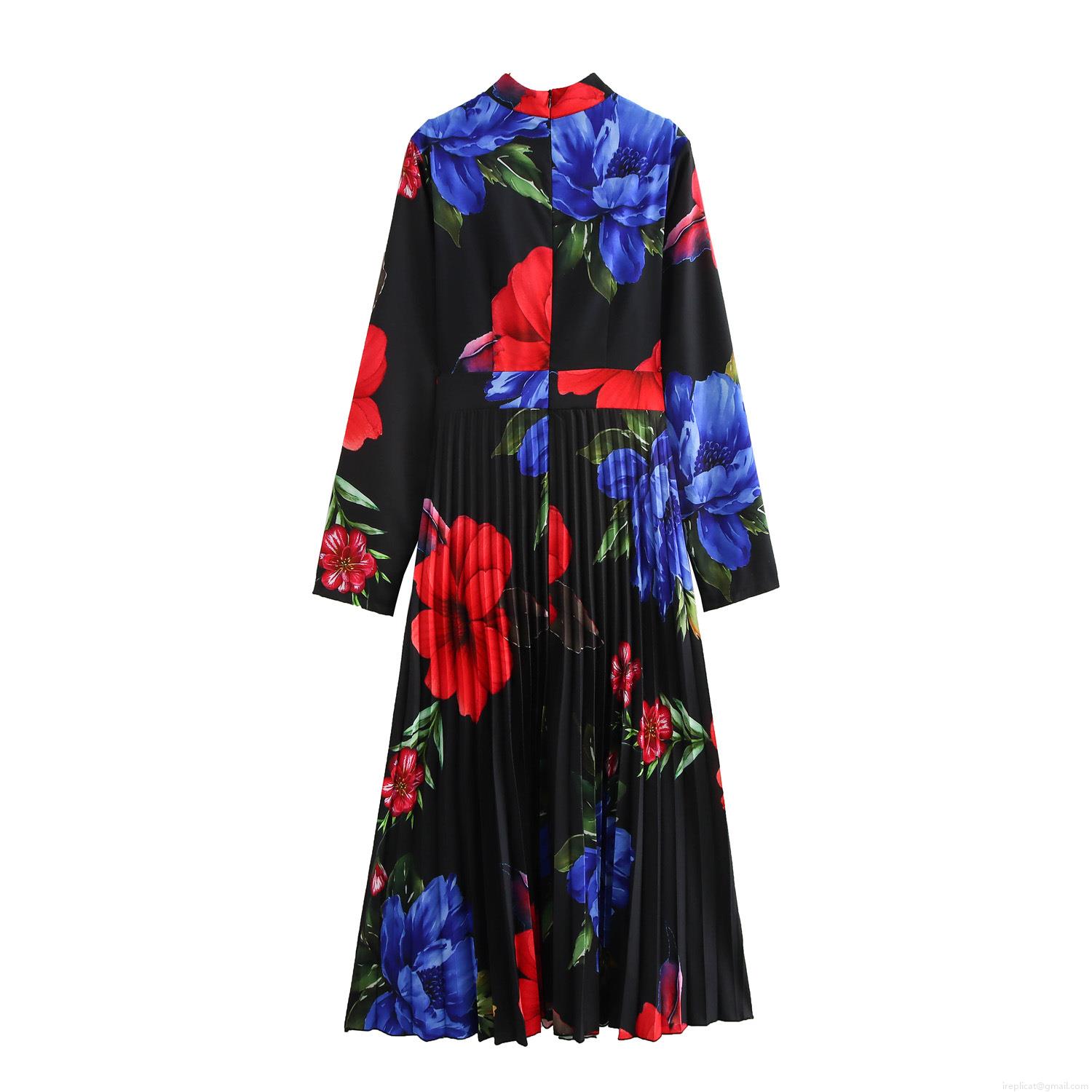 • Women's Elegant Floral Print Pleated Maxi Dress Long Sleeve Mock Neck High Waist Polyester Party Dress with Gold Buttons