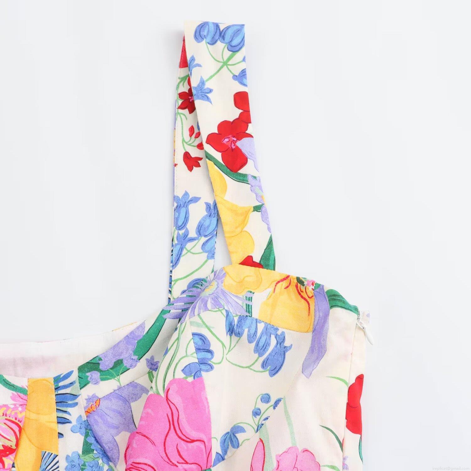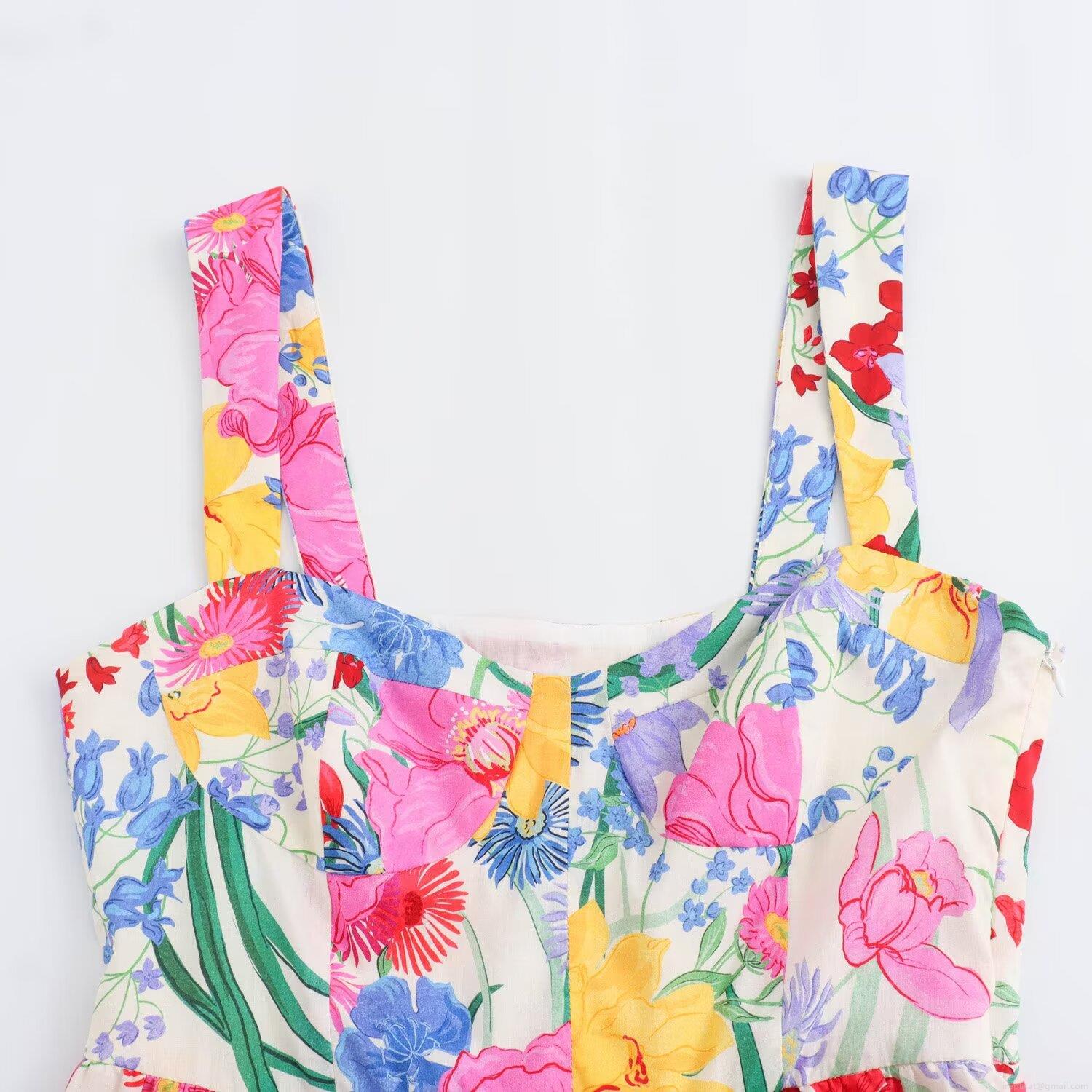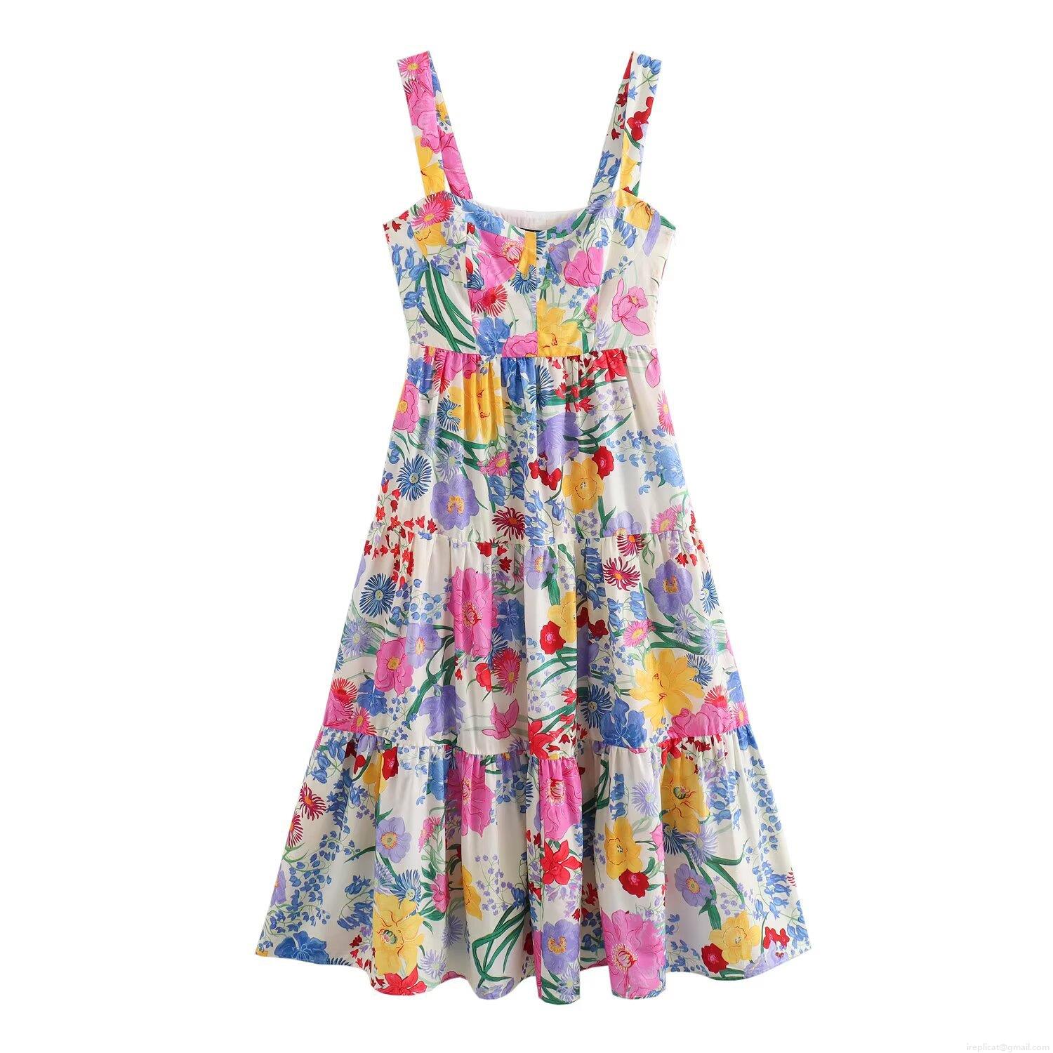 • Women's Elegant Floral Print Tiered Sling Maxi Dress Summer Slim Fit Square Neck Bohemian Style Vacation Beach Long Dress Lightweight Breathable Fabric For Ladies
