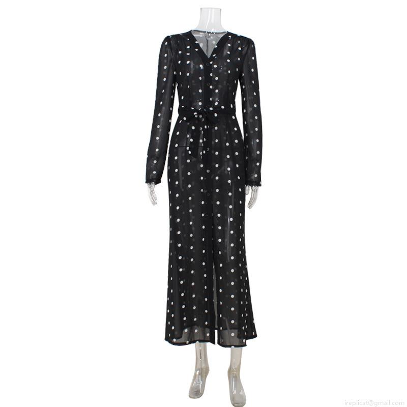 Polka Dots, Waist shaping, V-neck, Lace, Single-breasted, High Fork