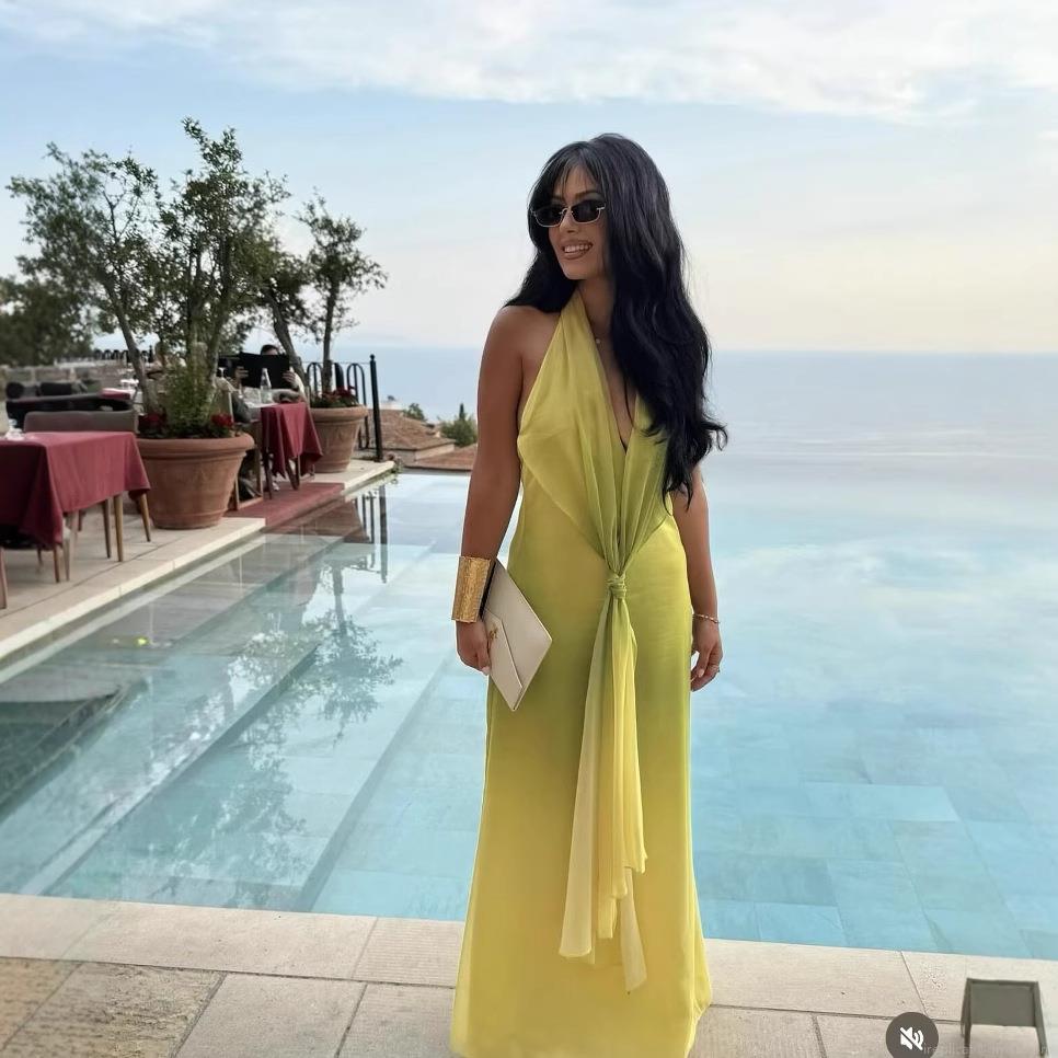 • Women's Elegant Gradient Halter Maxi Dress Deep V-Neck Backless Tie-Knot Waist Sleeveless Chiffon Long Sundress For Summer Vacation Beach Party