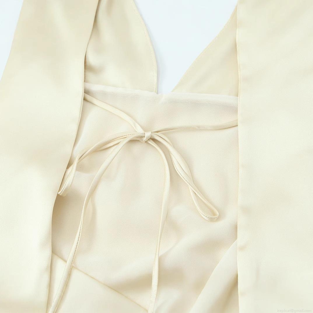 • Women's Elegant Halter Neck Backless Satin Maxi Dress Sexy Deep V-Neck Lace-Up Silk Texture Champagne Long Dress for Cocktail Party Wedding Vacation