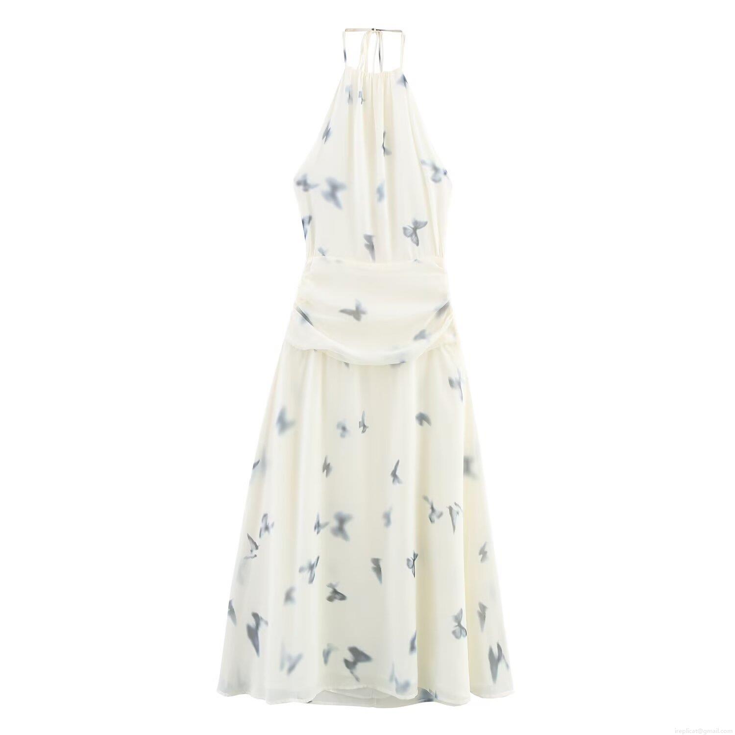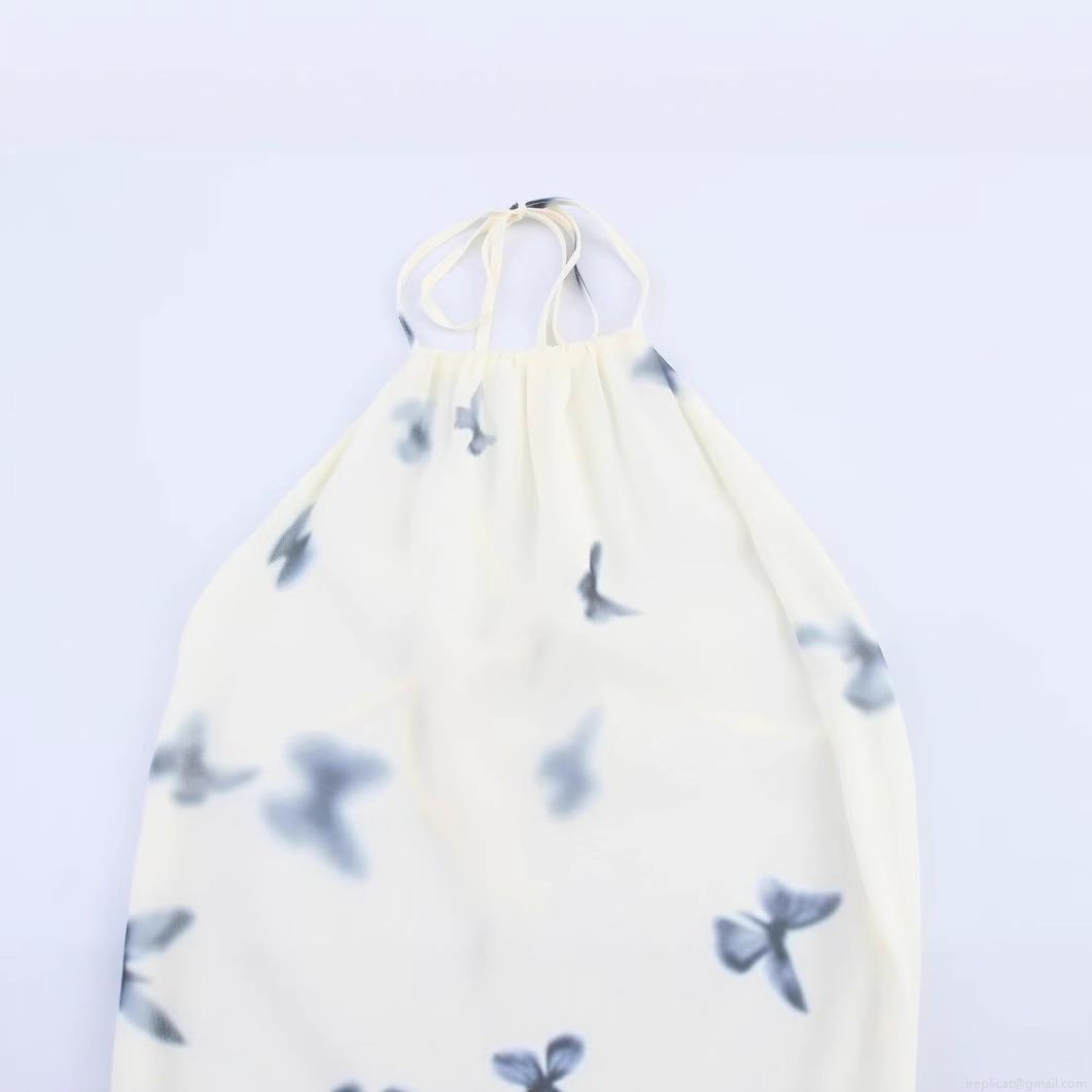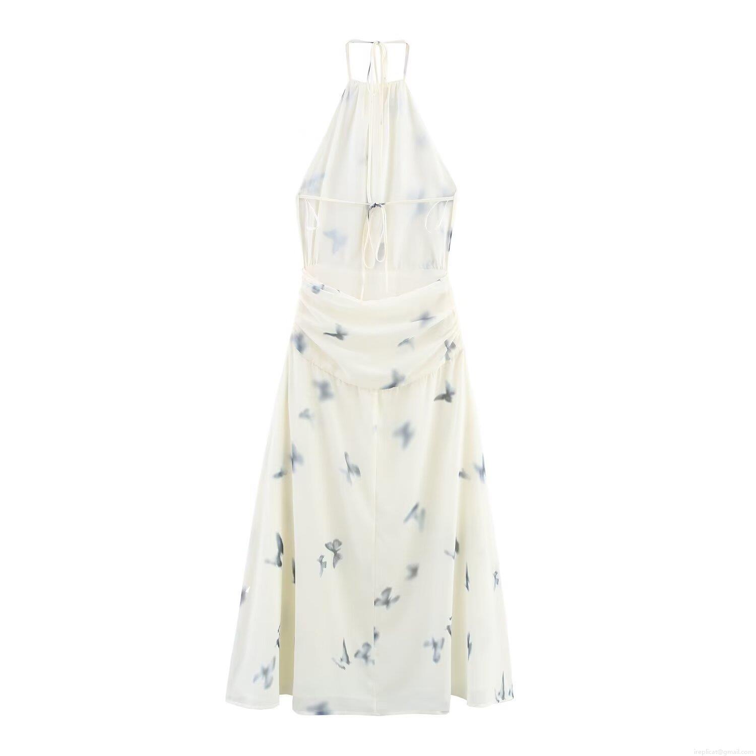• Women's Elegant Halter Neck Butterfly Print Chiffon Maxi Dress Sleeveless Backless Summer Vacation Party Long Dresses