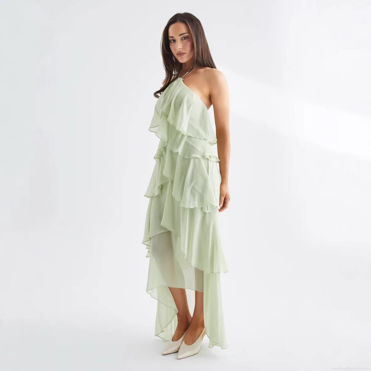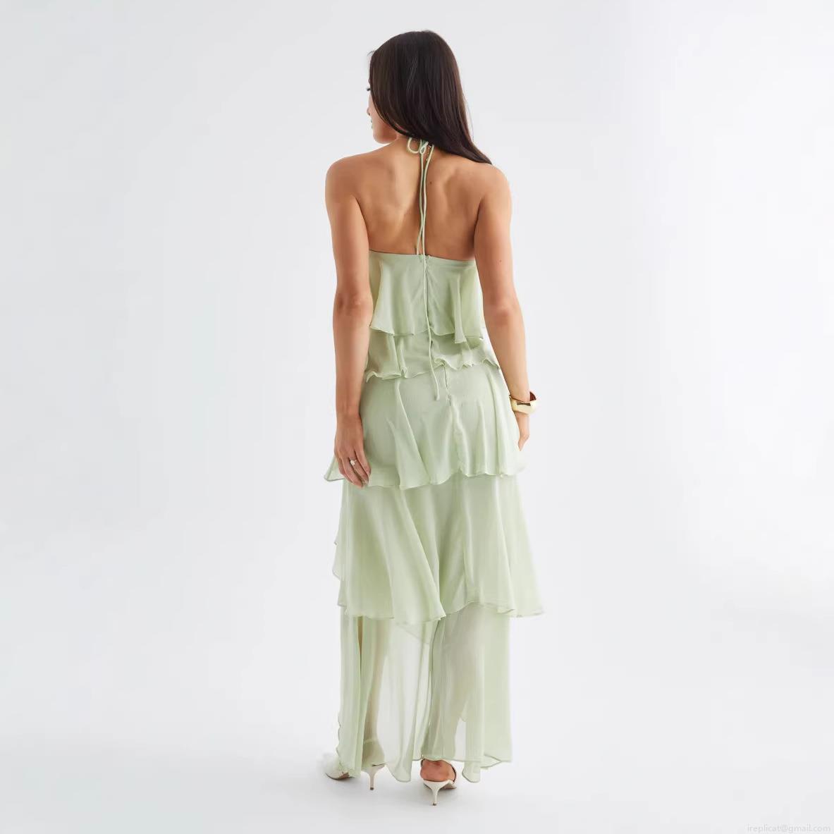 Solid Color, Backless, Pleating, Cake Skirt, Neckband Design, Irregular Hem, Layered Ruffles