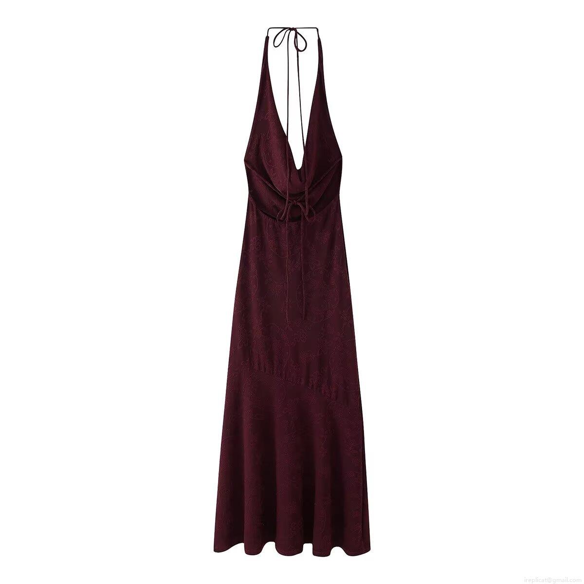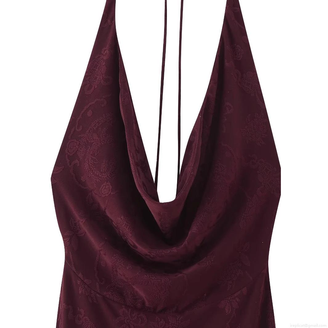Jacquard, Neckband, V-neck, Backless, Dangling, Floral Pattern