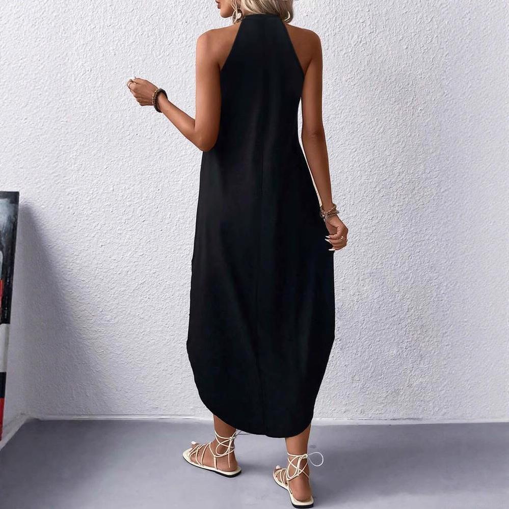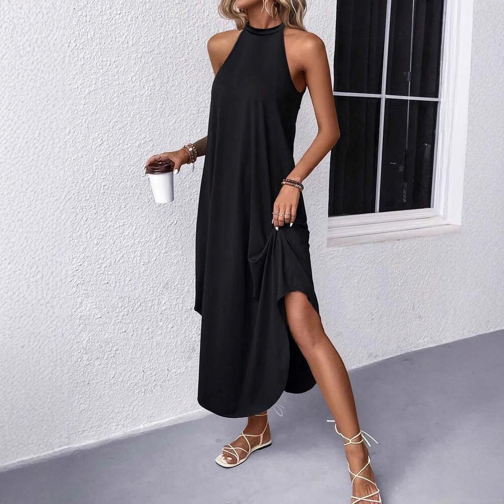 • Women's Elegant Halter Neck Maxi Dress Sleeveless Backless Side Slit Long Dress Sexy Solid Color Slim Fit Summer Sundress For Party Vacation